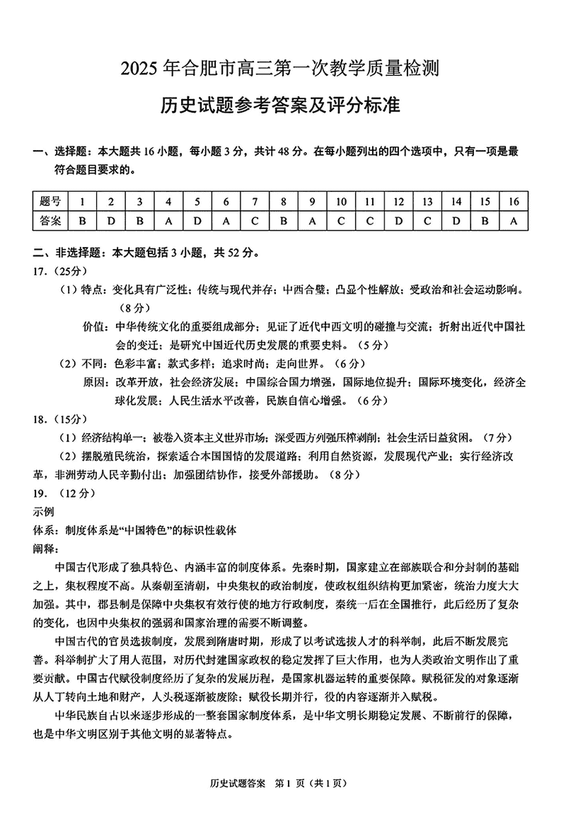 安徽合肥2025届高三第一次教学质检历史考试已于近日开考,为方便考生考后及时查看考试情况,查漏补缺、弥补不足,本文整理了试题答案解析相关信息!