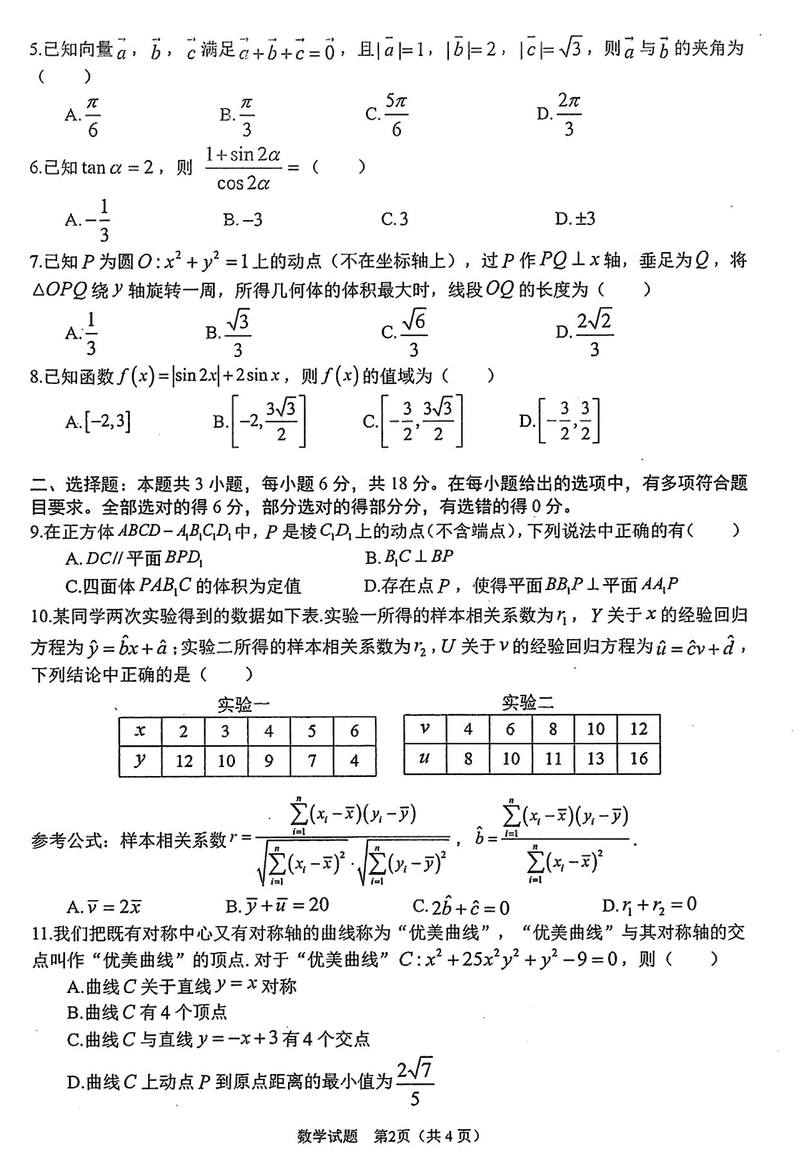 数学试题及答案解析