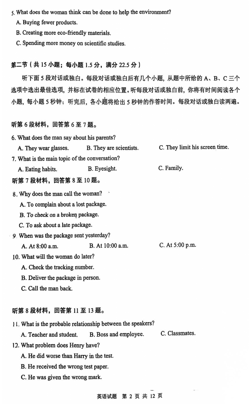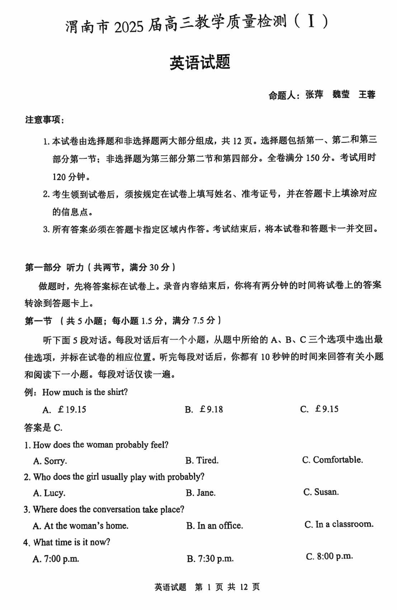 陕西渭南2025届高三上学期教学质量检测Ⅰ英语考试已于近日开考,为方便考生考后及时查看考试情况,查漏补缺、弥补不足,本文整理了试题答案解析相关信息!