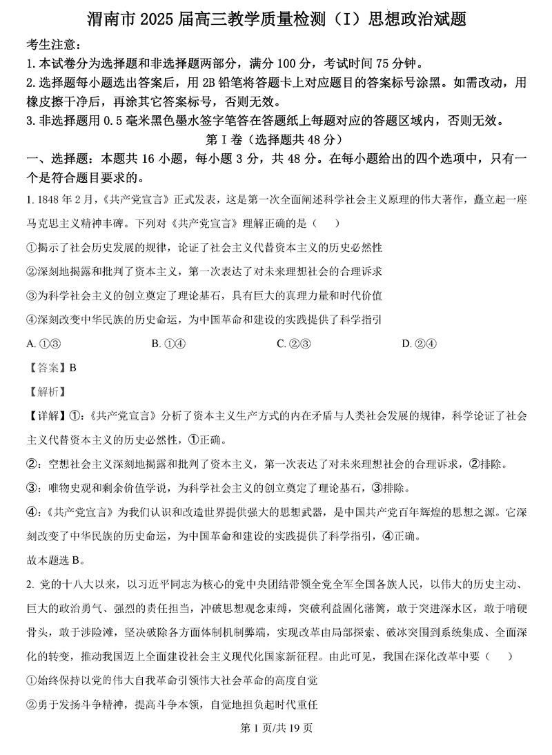 陕西渭南2025届高三上学期教学质量检测Ⅰ政治考试已于近日开考,为方便考生考后及时查看考试情况,查漏补缺、弥补不足,本文整理了试题答案解析相关信息!