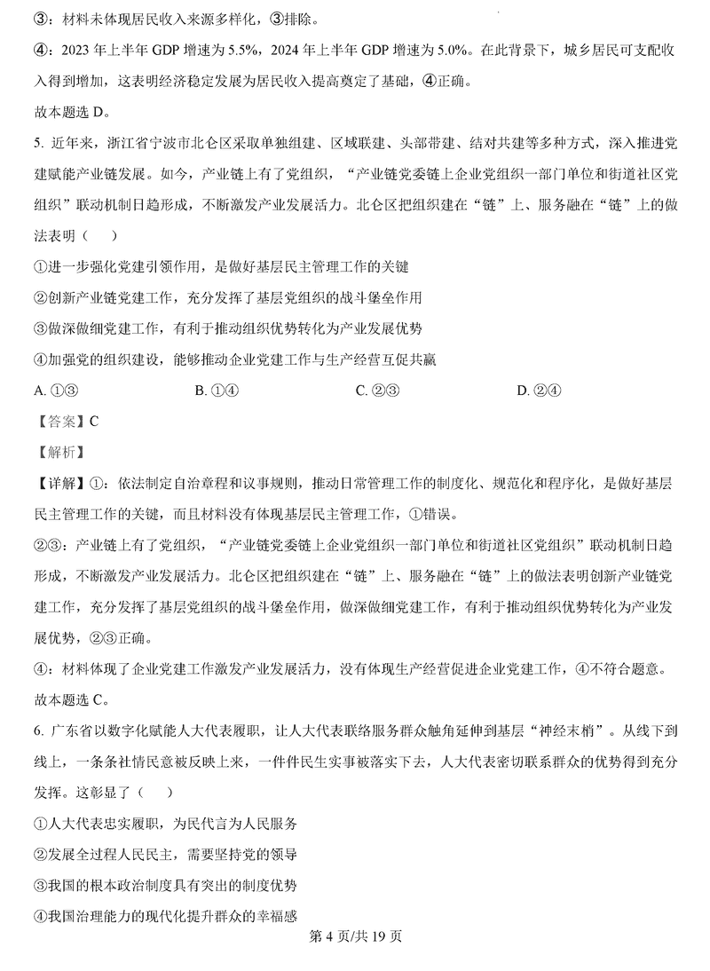 政治试题及答案解析