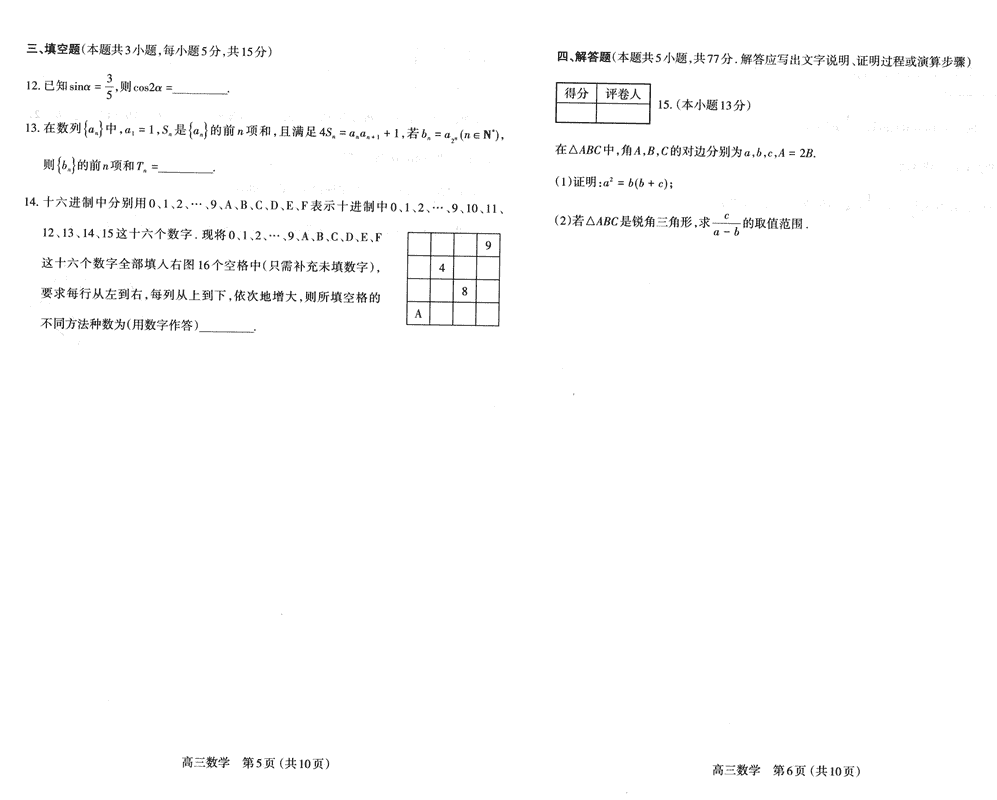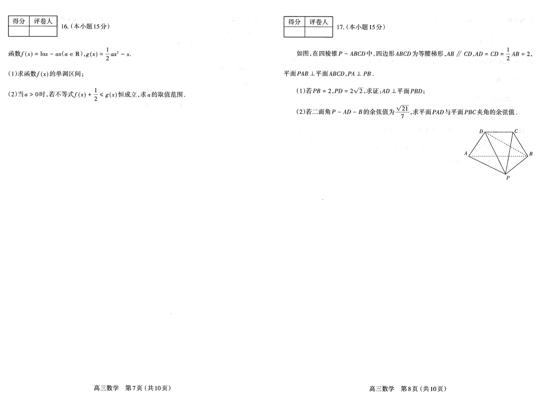 山西太原2024-2025学年高三期末学业诊断数学试题及答案