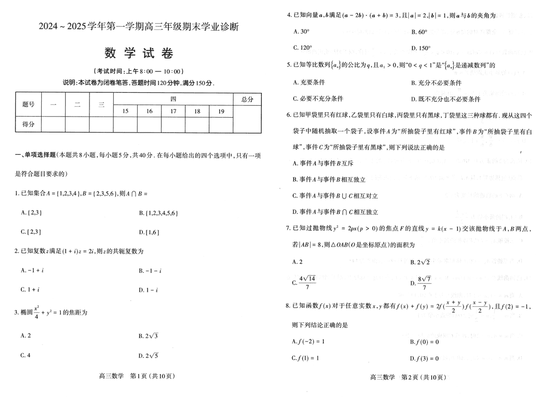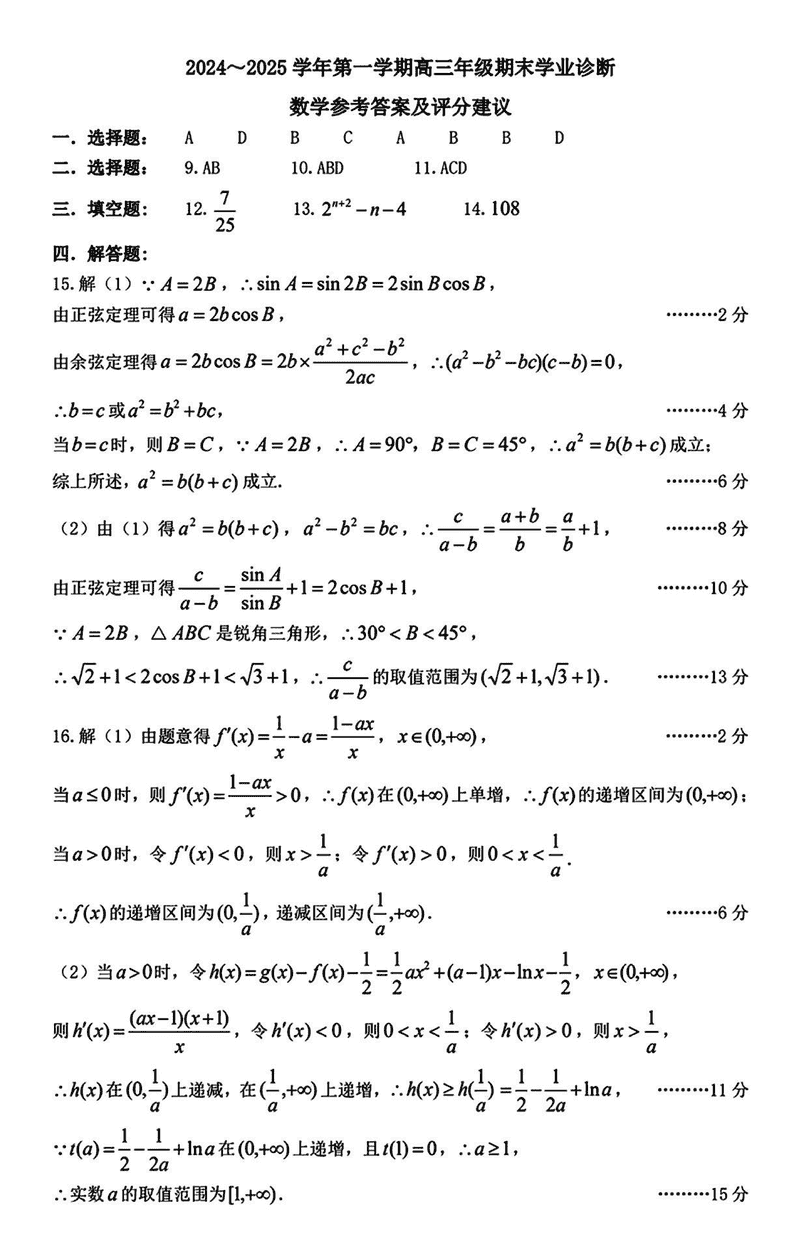 山西太原2024-2025学年高三期末学业诊断数学考试已于近日开考,为方便考生考后及时查看考试情况,查漏补缺、弥补不足,本文整理了试题答案解析相关信息!