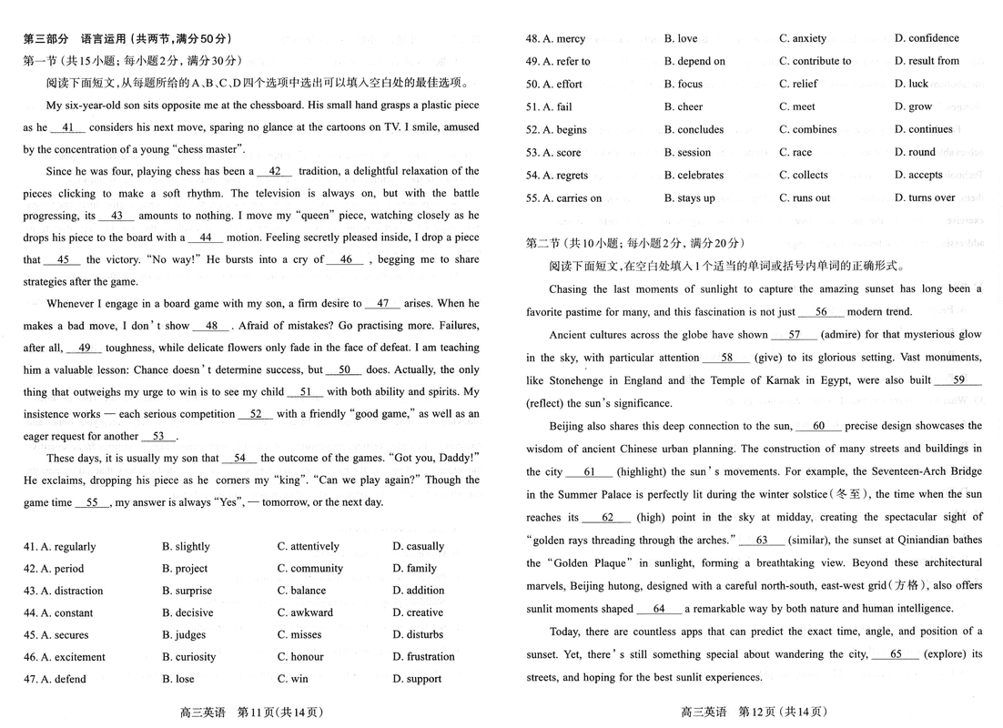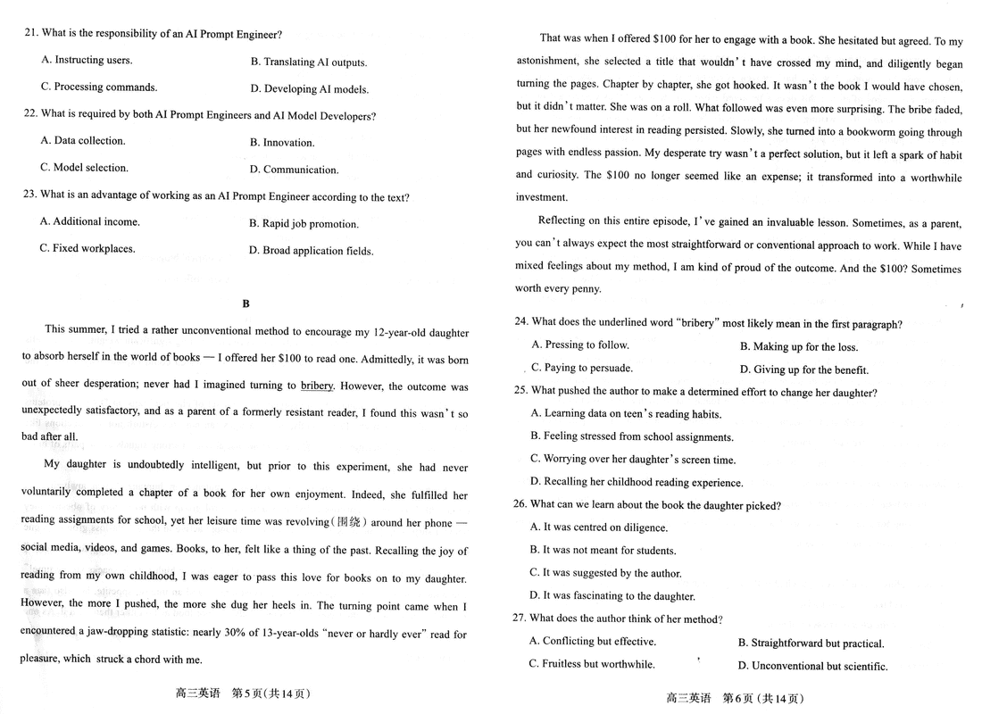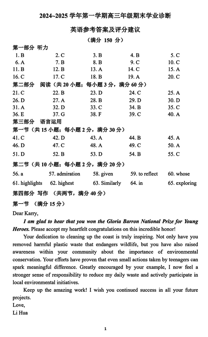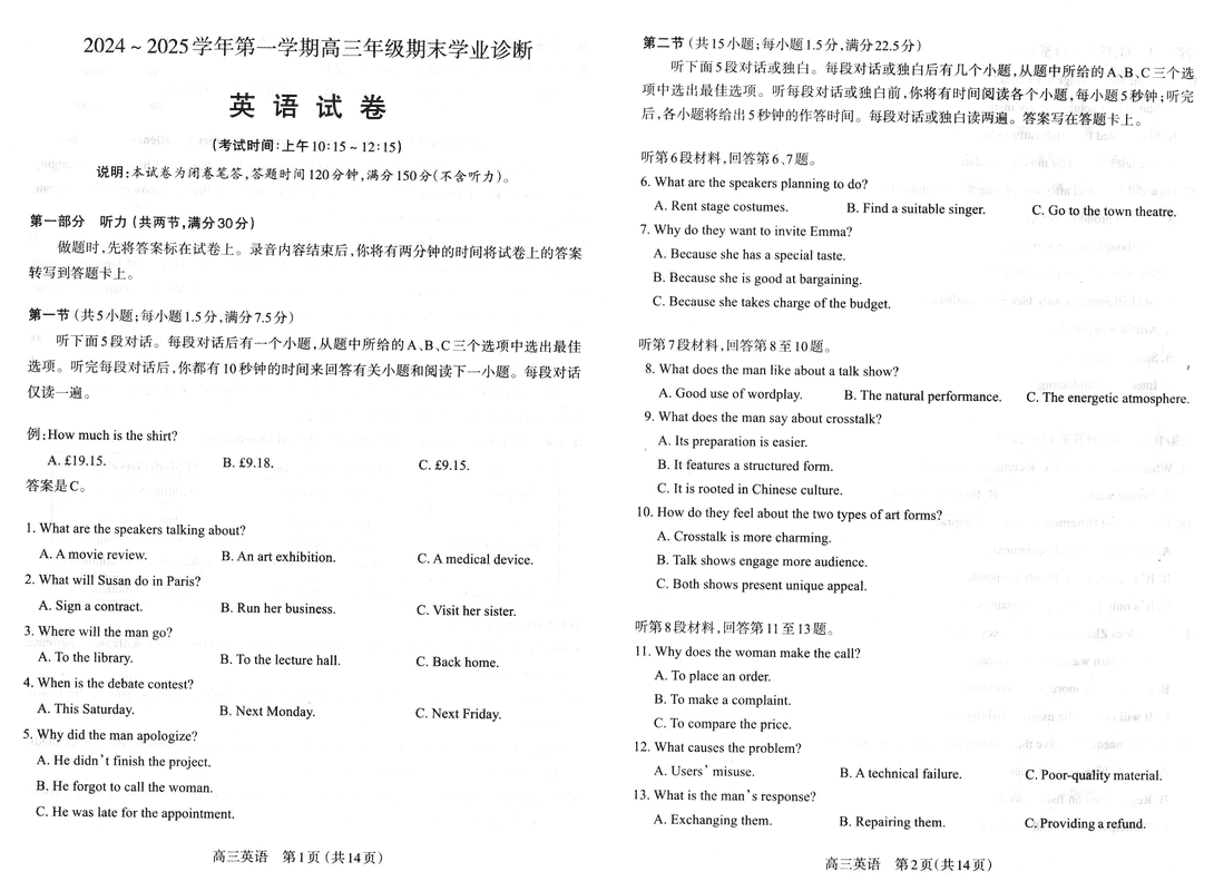 山西太原2024-2025学年高三期末学业诊断英语考试已于近日开考,为方便考生考后及时查看考试情况,查漏补缺、弥补不足,本文整理了试题答案解析相关信息!