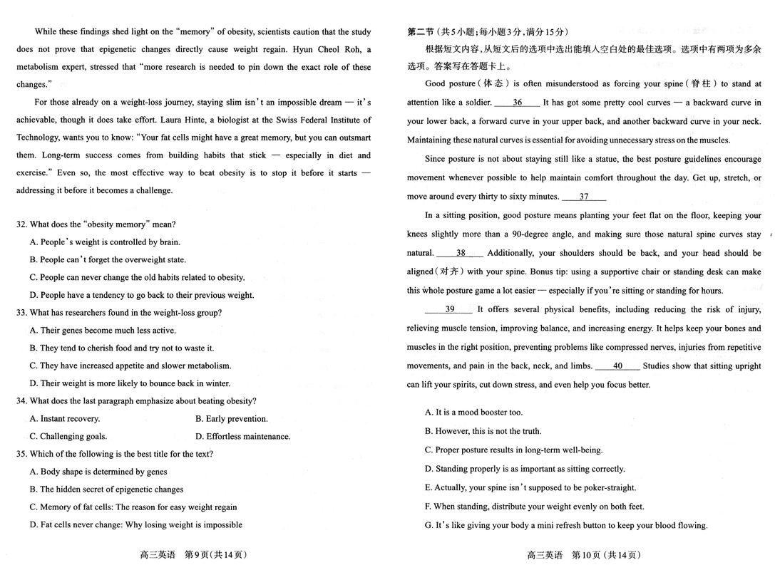 山西太原2024-2025学年高三期末学业诊断英语试题及答案