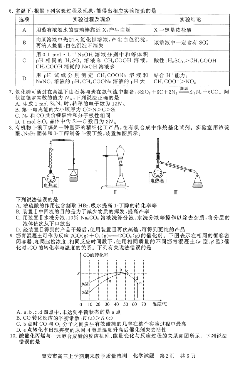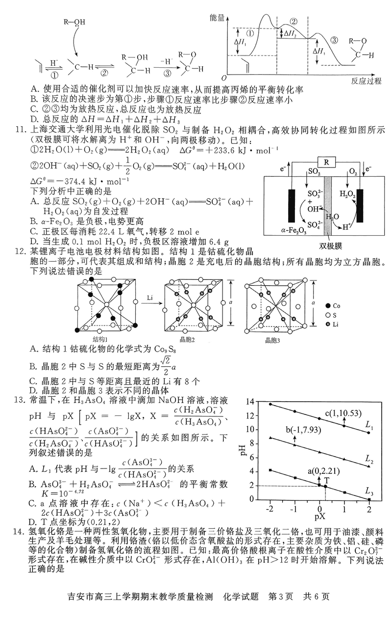江西吉安2025届高三上1月期末教学质检化学考试已于近日开考,为方便考生考后及时查看考试情况,查漏补缺、弥补不足,本文整理了试题答案解析相关信息!