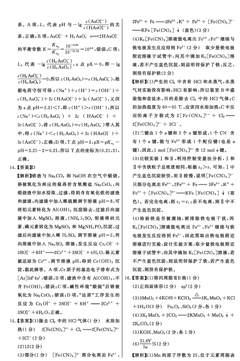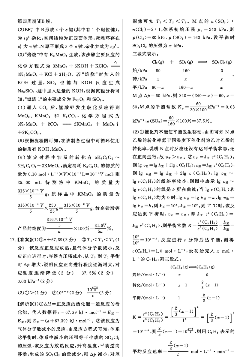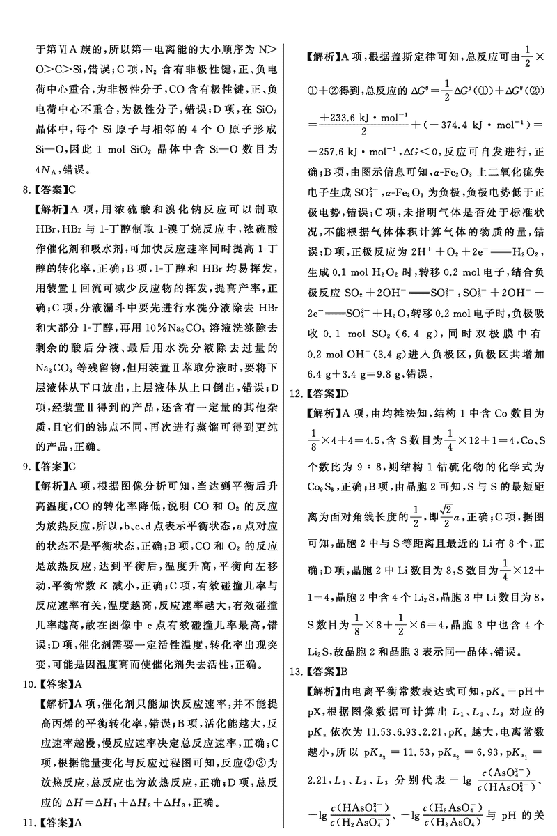 化学试题及答案解析