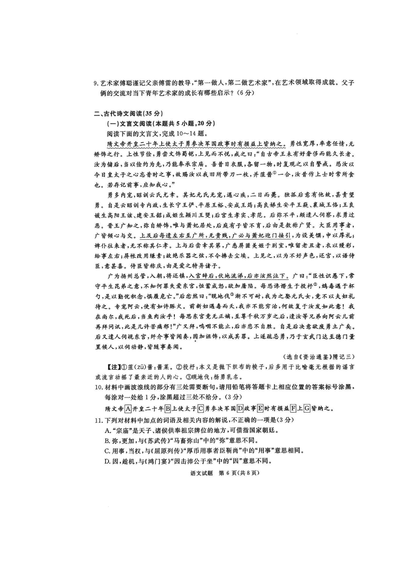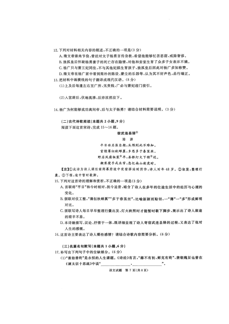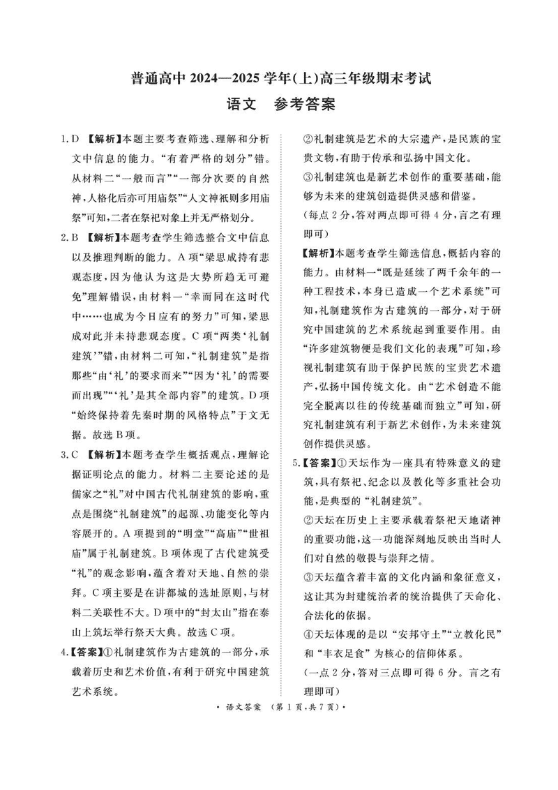 河南青桐鸣大联考2024-2025学年高三上期末语文试题及答案