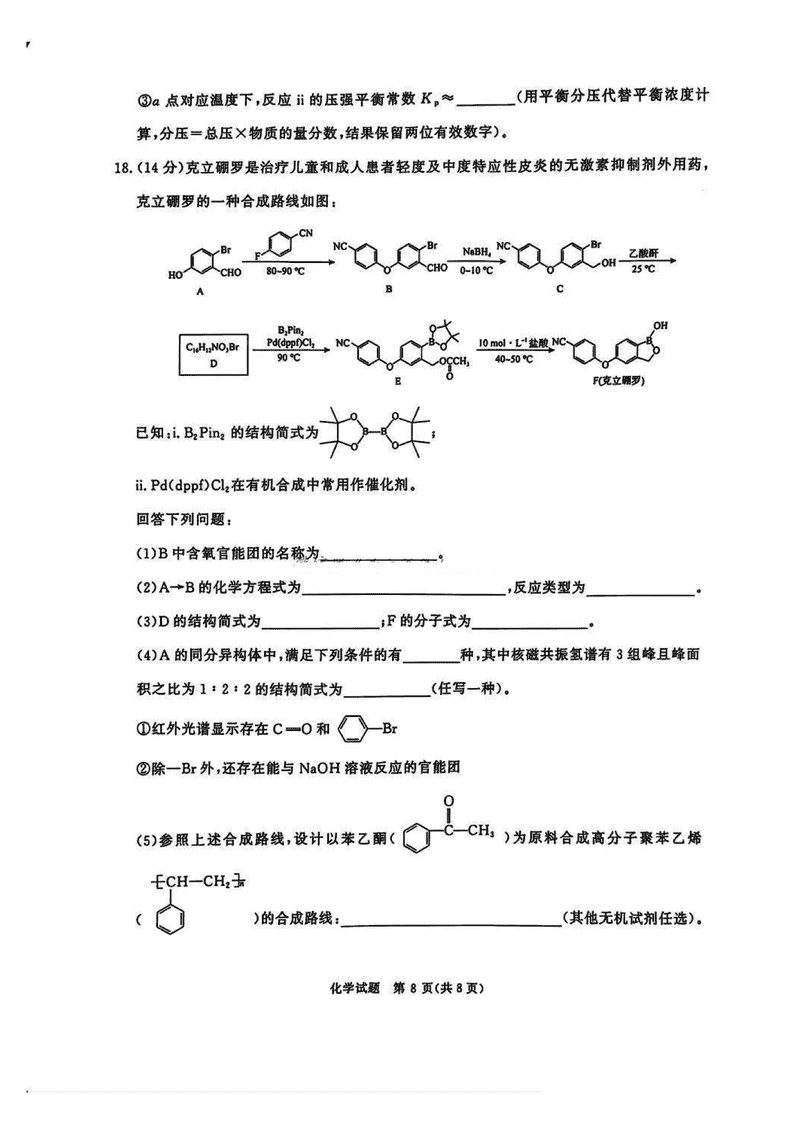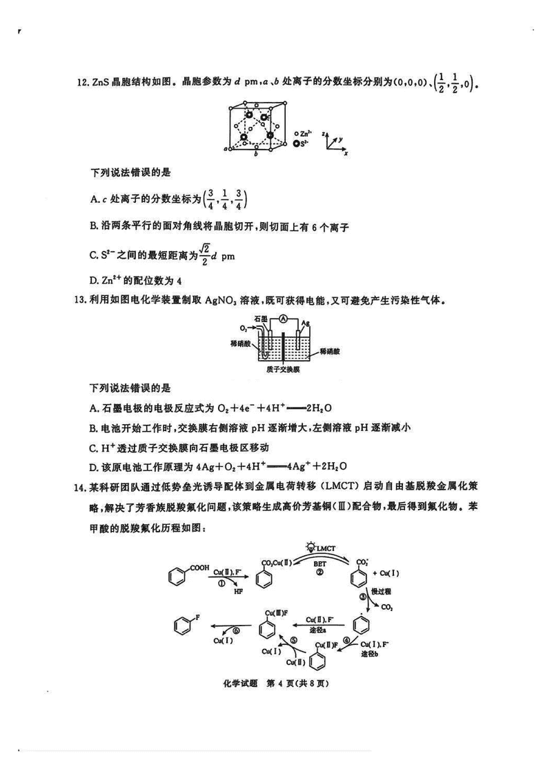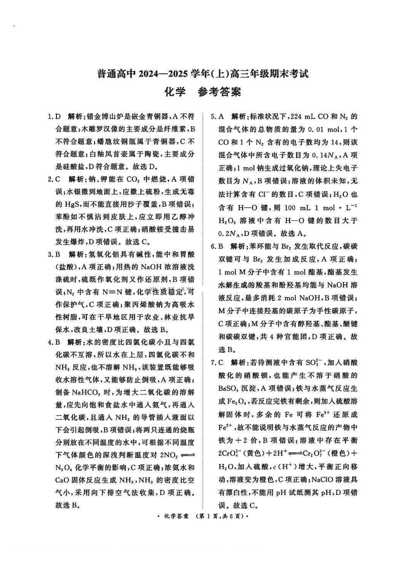 河南青桐鸣大联考2024-2025学年高三上期末化学试题及答案