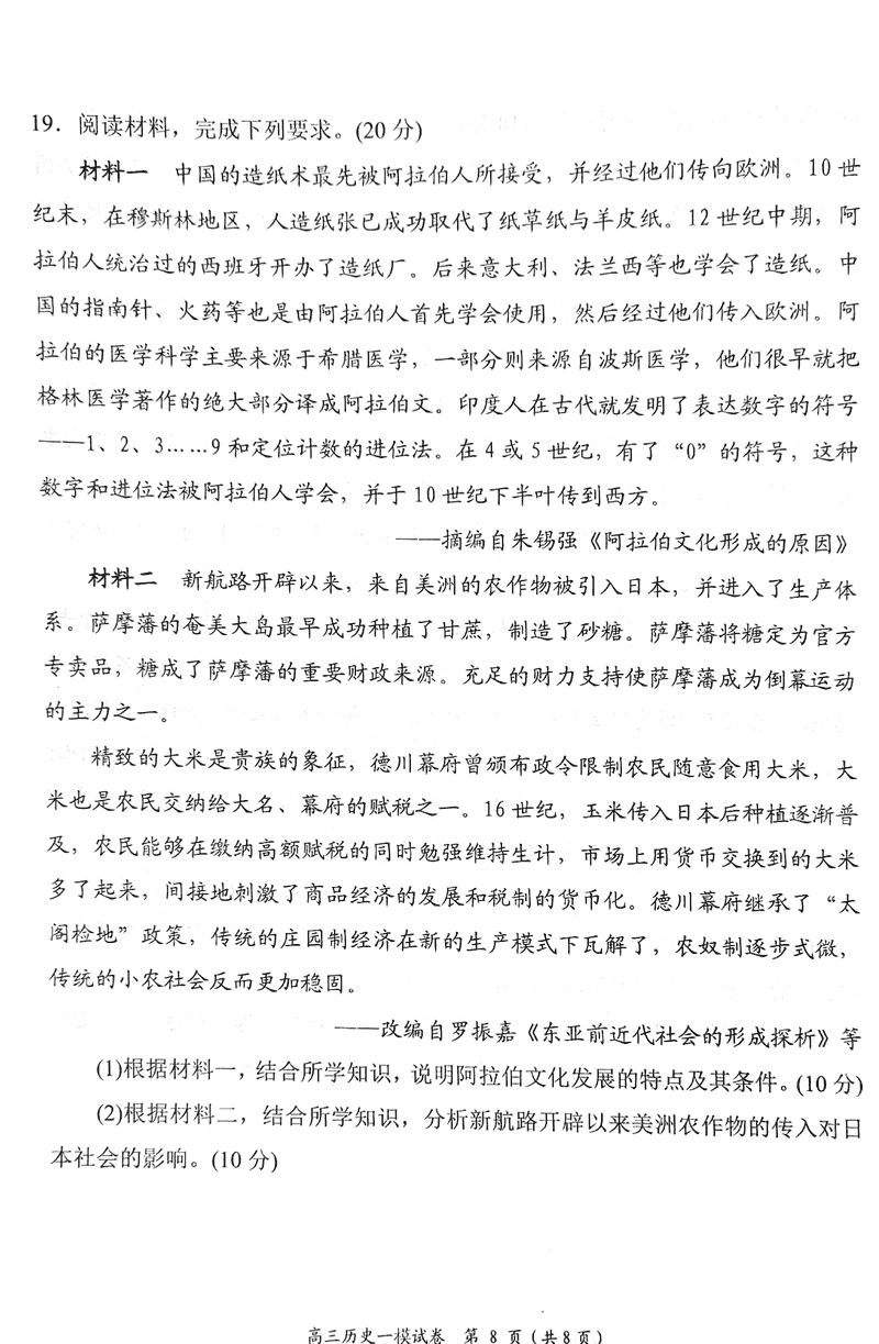 历史试题及答案解析