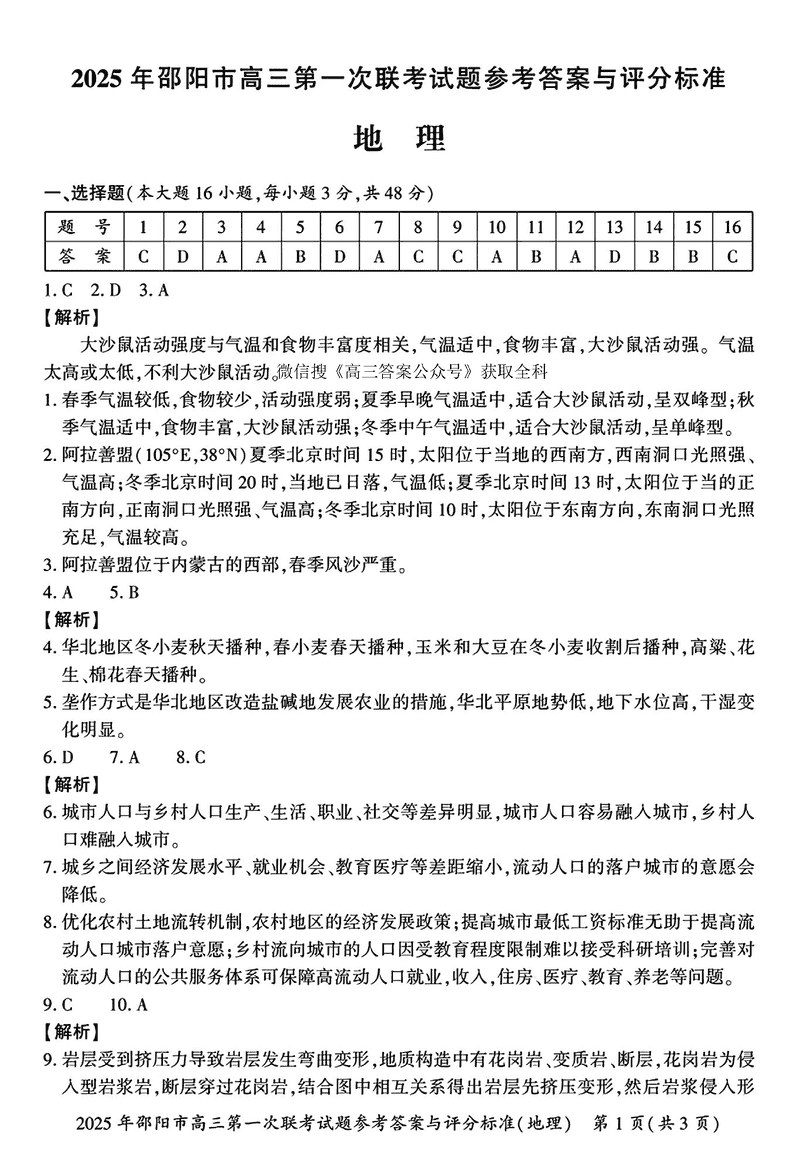湖南邵阳2025年高三上学期期末地理考试已于近日开考,为方便考生考后及时查看考试情况,查漏补缺、弥补不足,本文整理了试题答案解析相关信息!