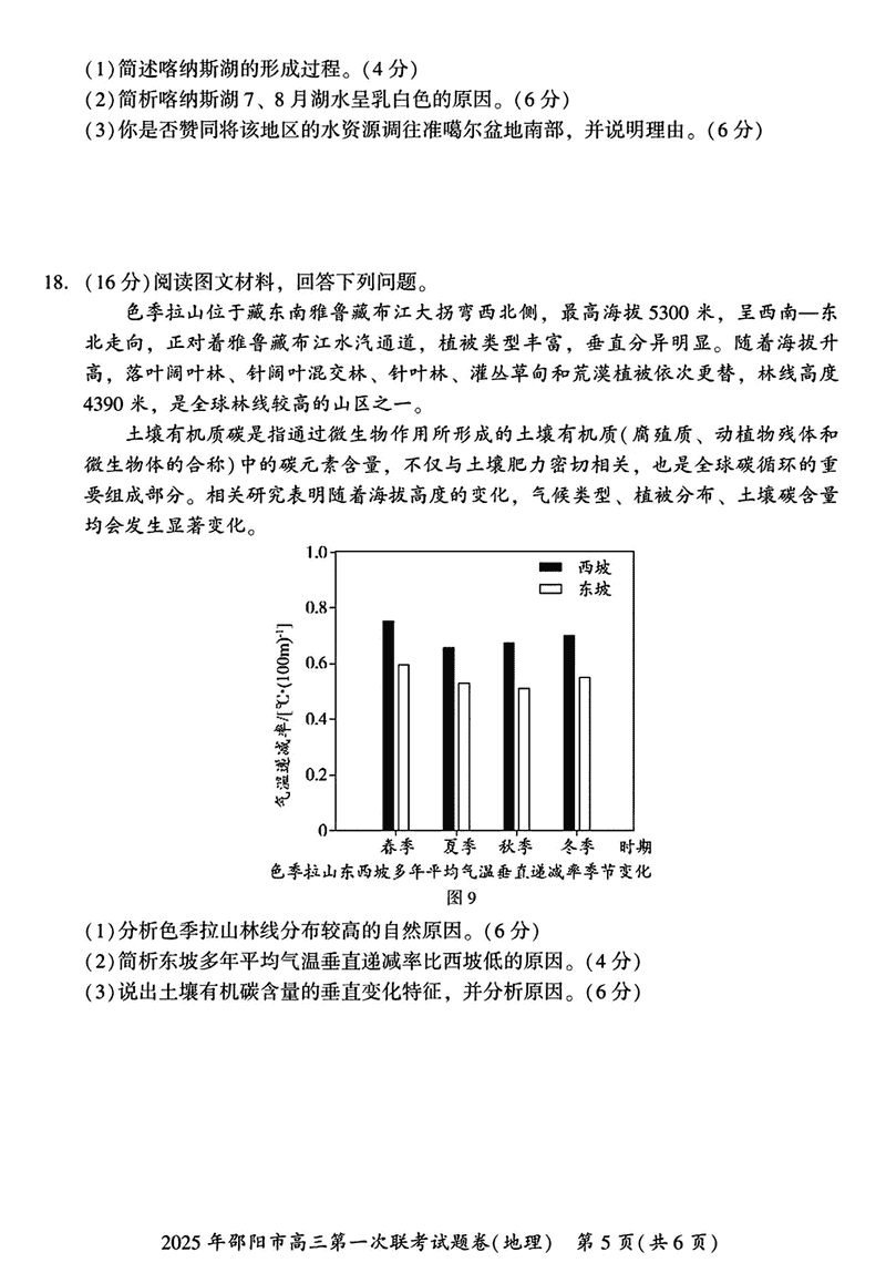 湖南邵阳2025年高三上学期期末地理试题及答案