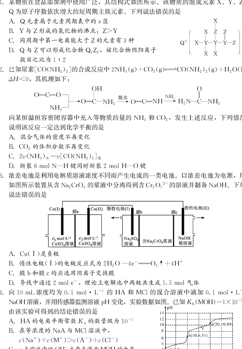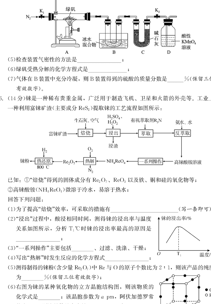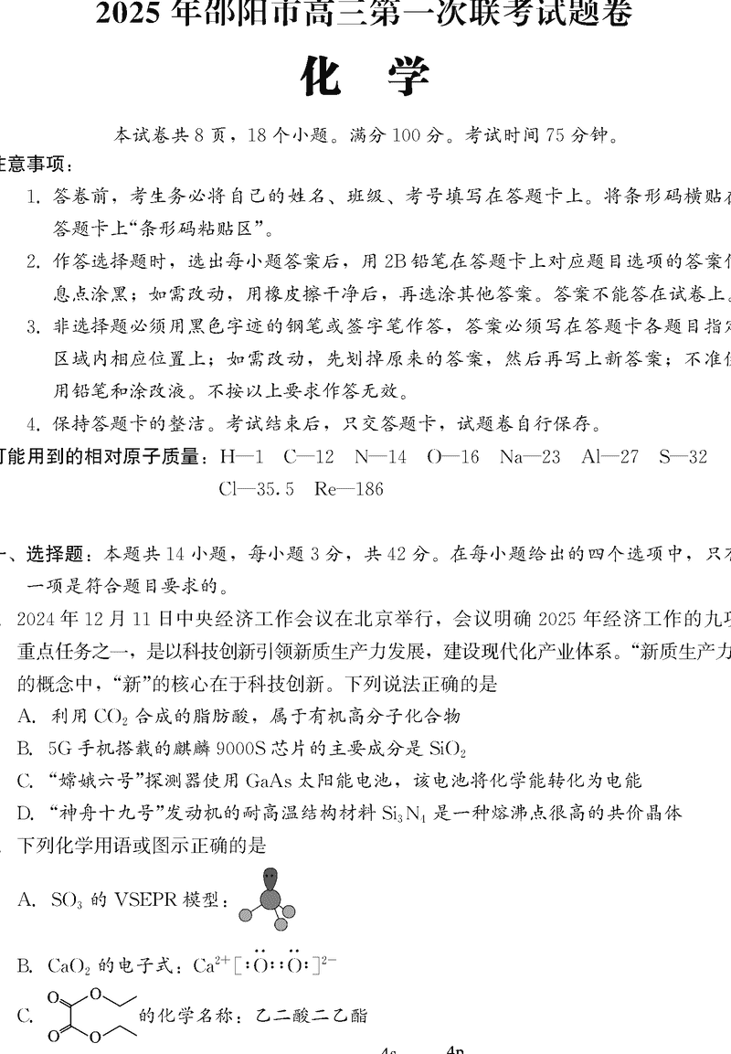 湖南邵阳2025年高三上学期期末化学试题及答案
