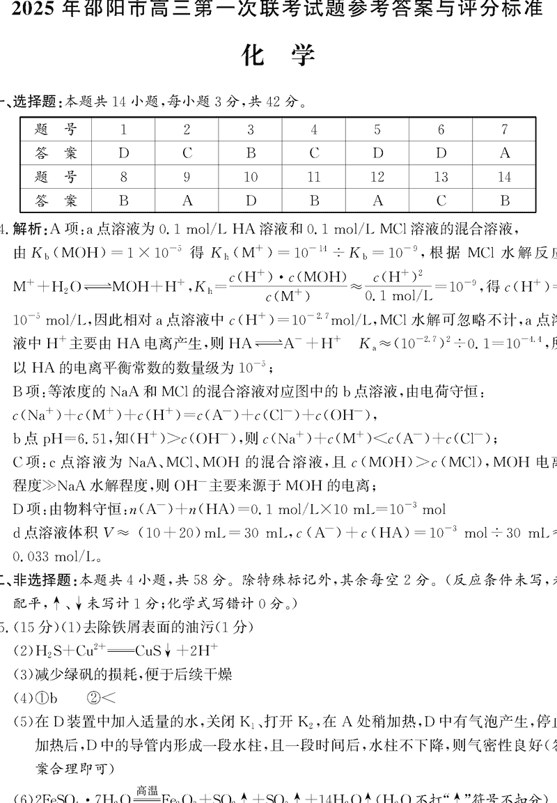湖南邵阳2025年高三上学期期末化学考试已于近日开考,为方便考生考后及时查看考试情况,查漏补缺、弥补不足,本文整理了试题答案解析相关信息!