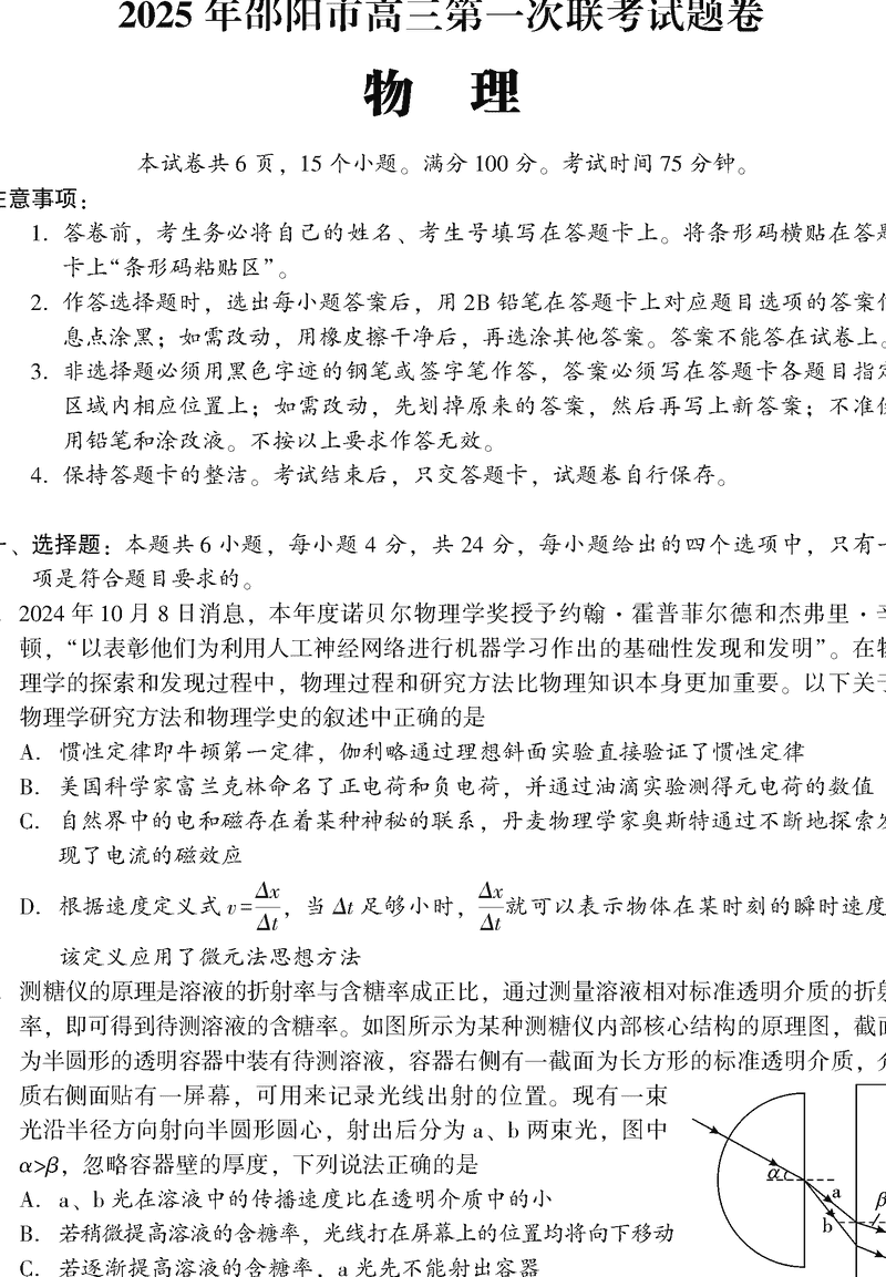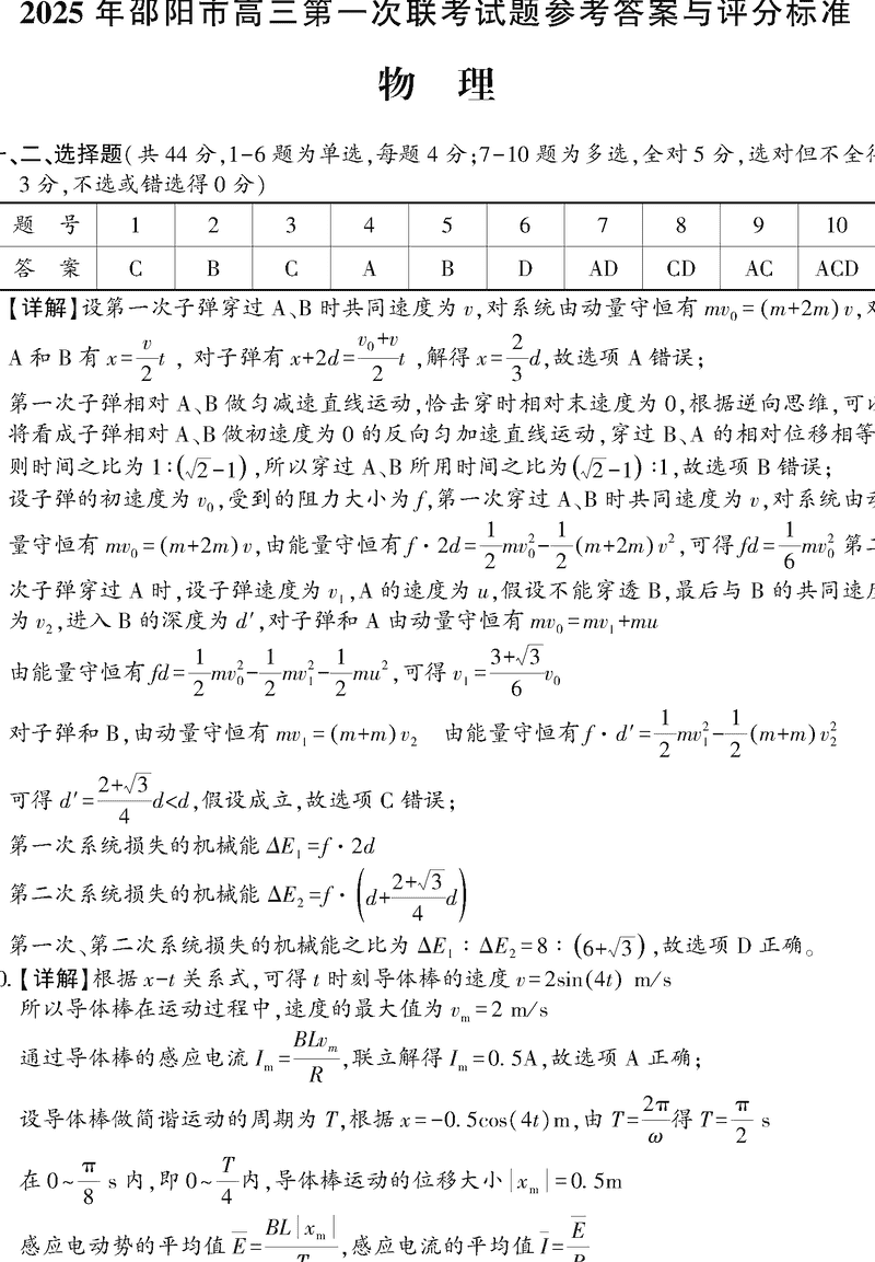 湖南邵阳2025年高三上学期期末物理考试已于近日开考,为方便考生考后及时查看考试情况,查漏补缺、弥补不足,本文整理了试题答案解析相关信息!