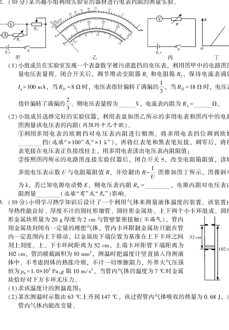 湖南邵阳2025年高三上学期期末物理试题及答案