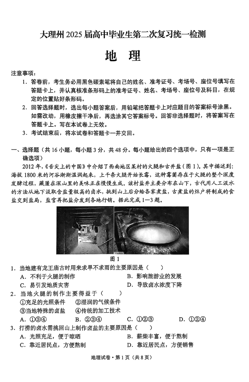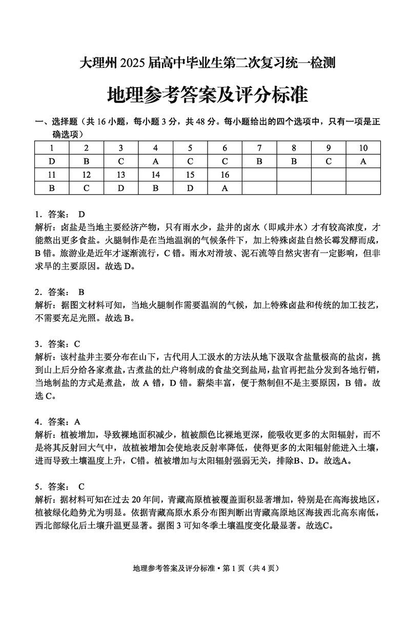 云南大理2025届高三第二次复习统测地理考试已于近日开考,为方便考生考后及时查看考试情况,查漏补缺、弥补不足,本文整理了试题答案解析相关信息!