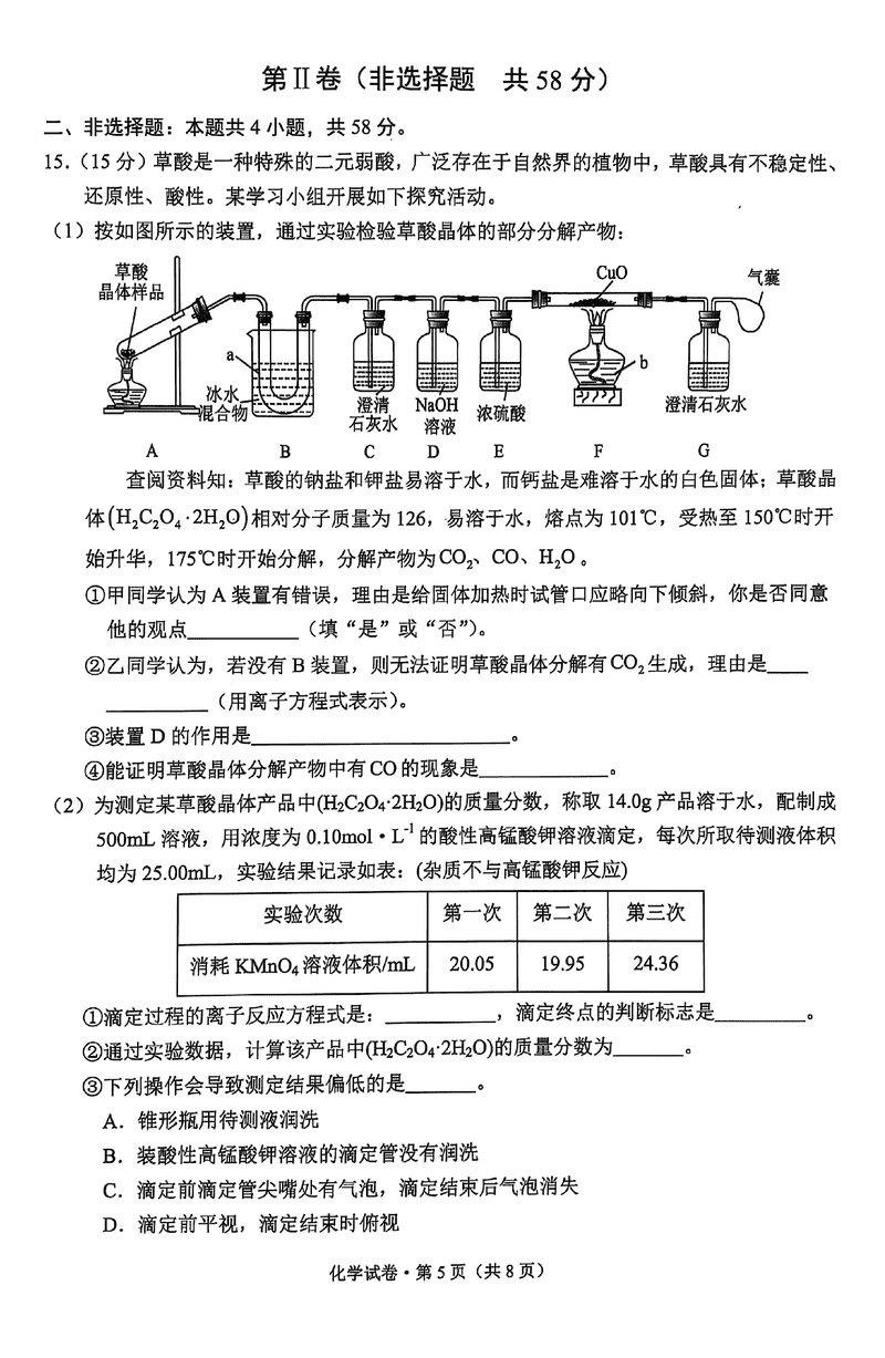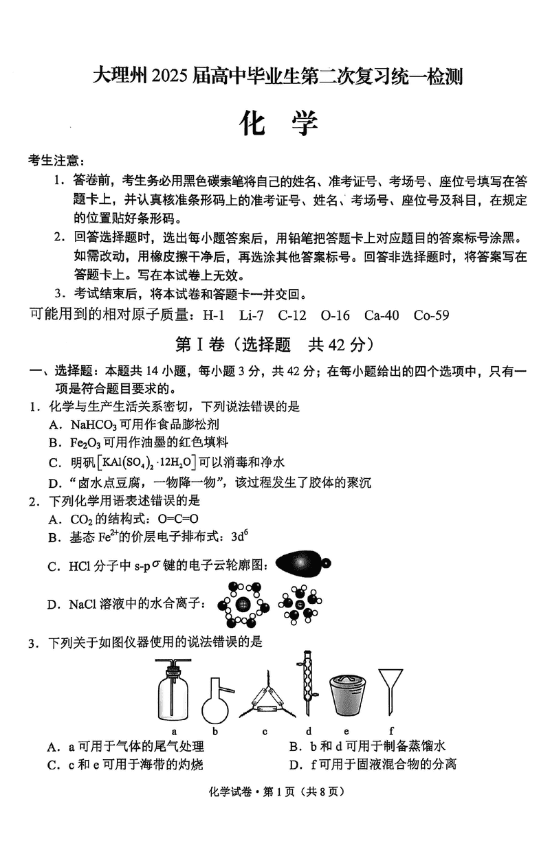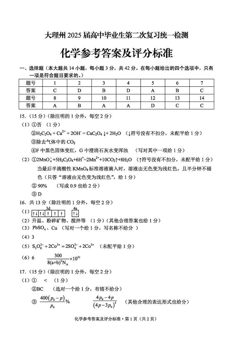云南大理2025届高三第二次复习统测化学考试已于近日开考,为方便考生考后及时查看考试情况,查漏补缺、弥补不足,本文整理了试题答案解析相关信息!