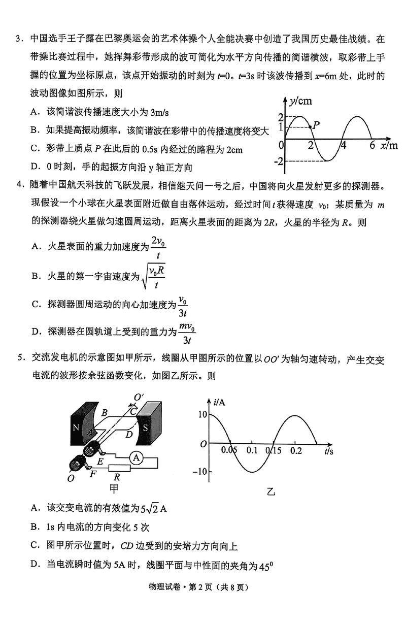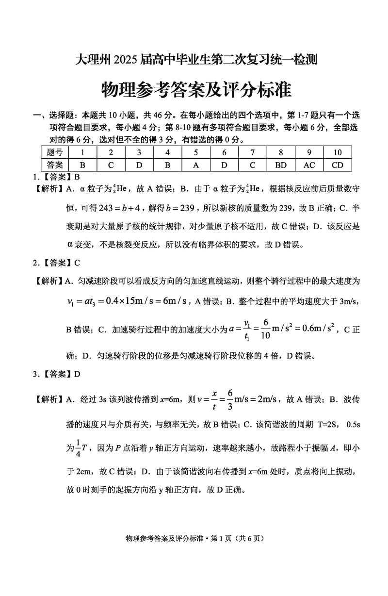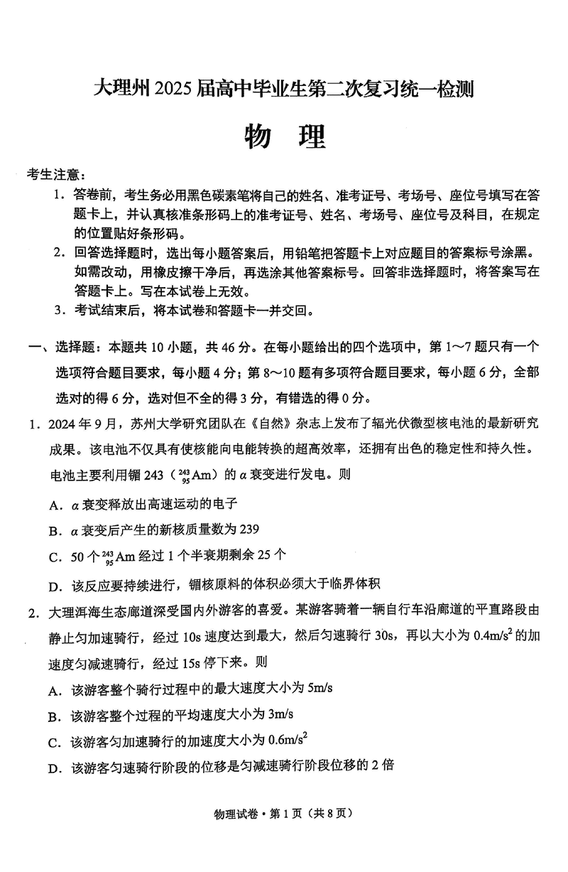 云南大理2025届高三第二次复习统测物理考试已于近日开考,为方便考生考后及时查看考试情况,查漏补缺、弥补不足,本文整理了试题答案解析相关信息!