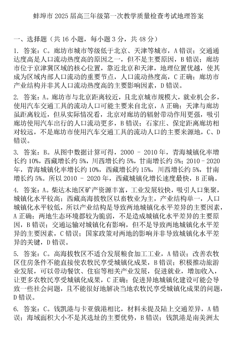 安徽蚌埠2025届高三上学期1月第一次教学质量检查地理考试已于近日开考,为方便考生考后及时查看考试情况,查漏补缺、弥补不足,本文整理了试题答案解析相关信息!