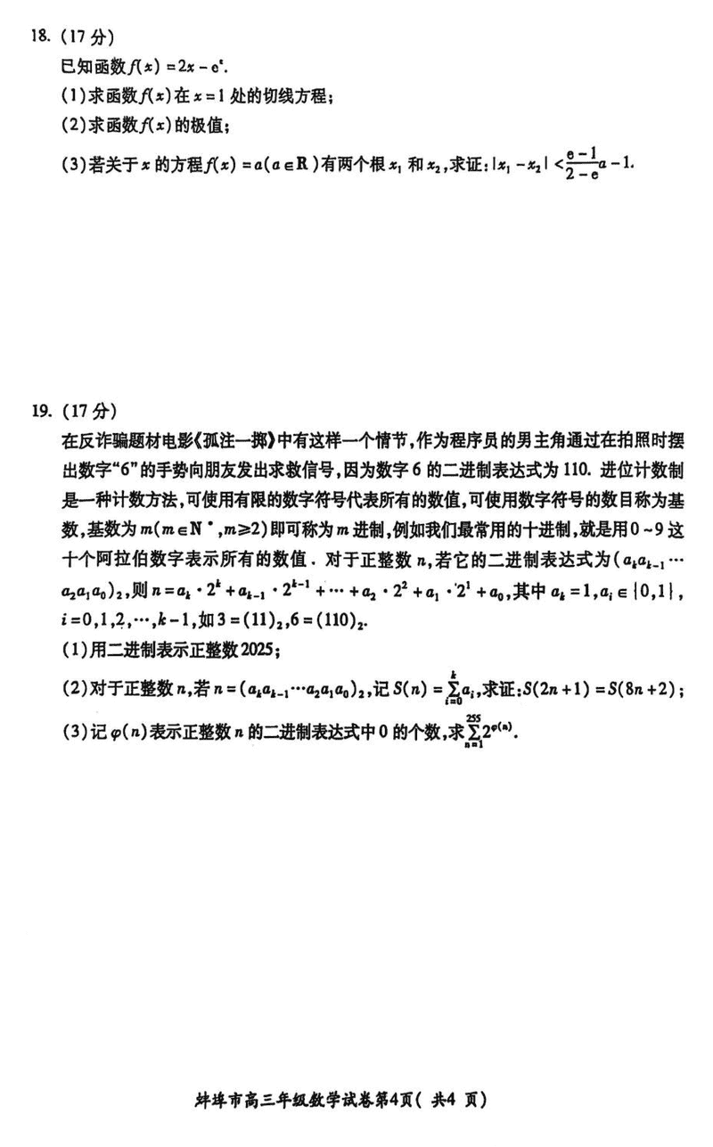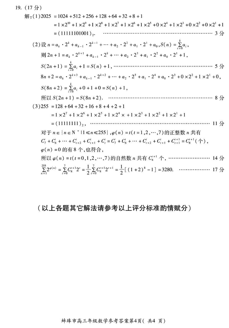 安徽蚌埠2025届高三上学期1月第一次教学质量检查数学试题及答案