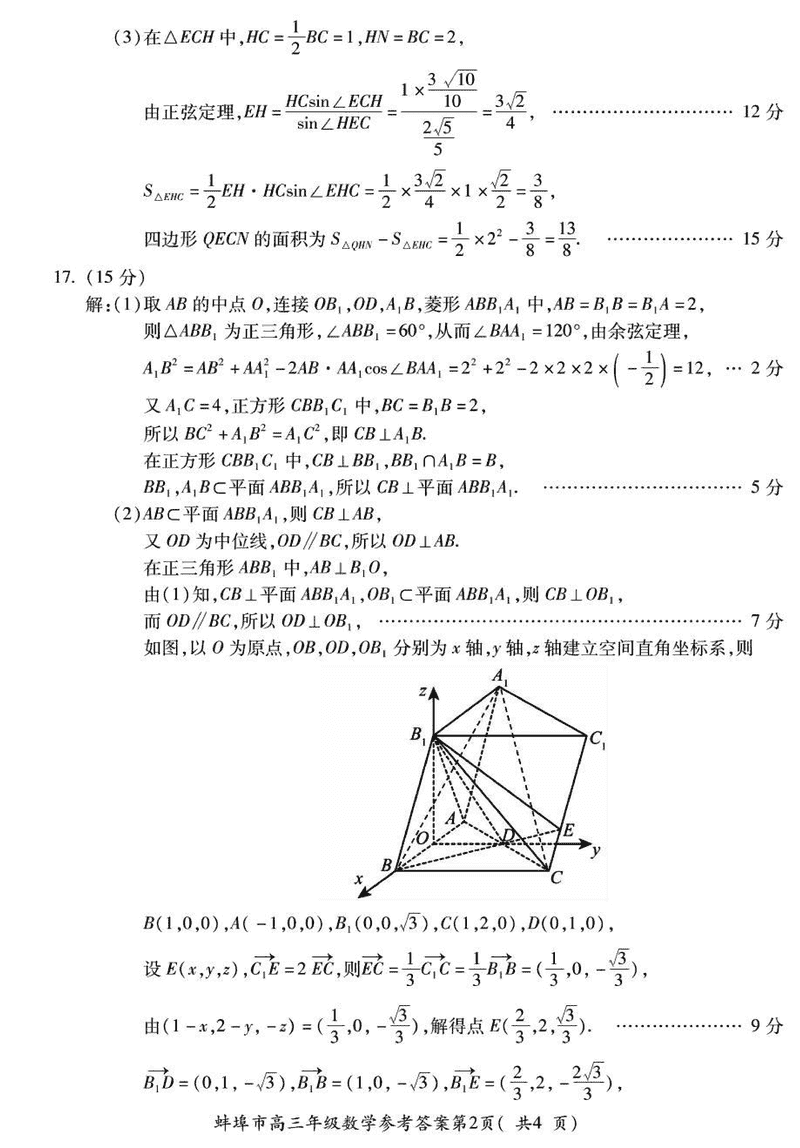 安徽蚌埠2025届高三上学期1月第一次教学质量检查数学考试已于近日开考,为方便考生考后及时查看考试情况,查漏补缺、弥补不足,本文整理了试题答案解析相关信息!