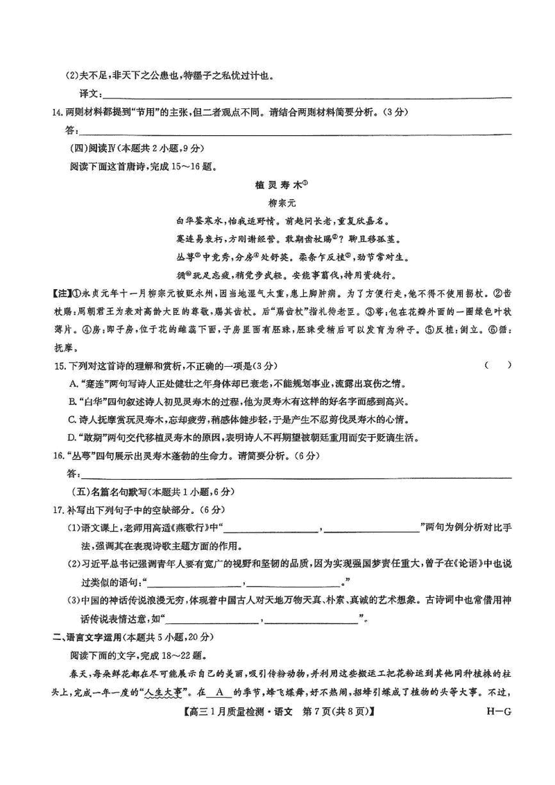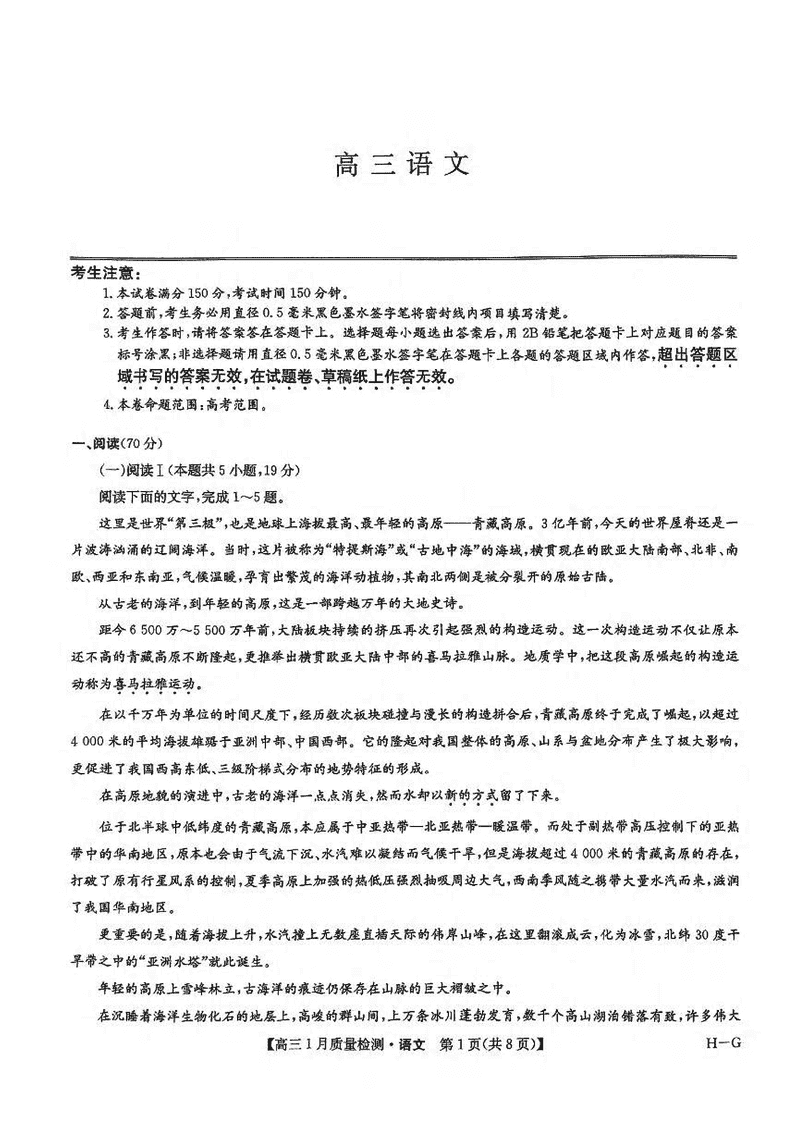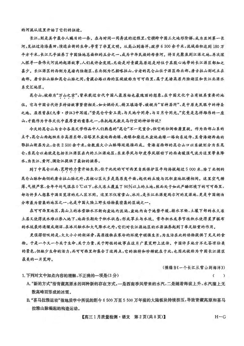 九师联盟2025届高三1月质量检测G语文试题及答案 时间:2025-01-24 语文试题 九师联盟2025届高三1月质量检测G语文考试已于近日开考,为方便考生考后及时查看考试情况,查漏补缺、弥补不足,本文整理了试题答案解析相关信息! 汇总:九师联盟2025届高三1月质量检测G试题及答案汇总 语文试题及答案解析