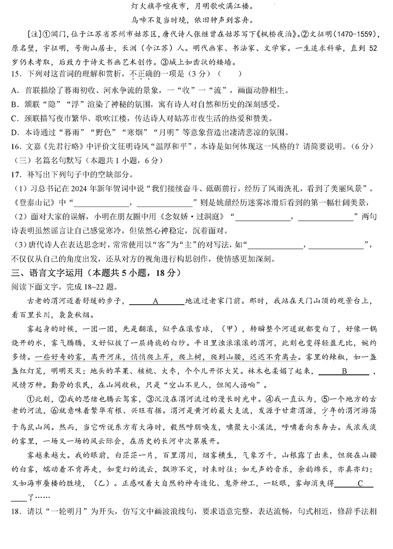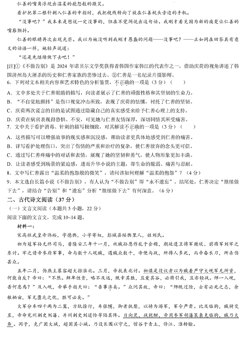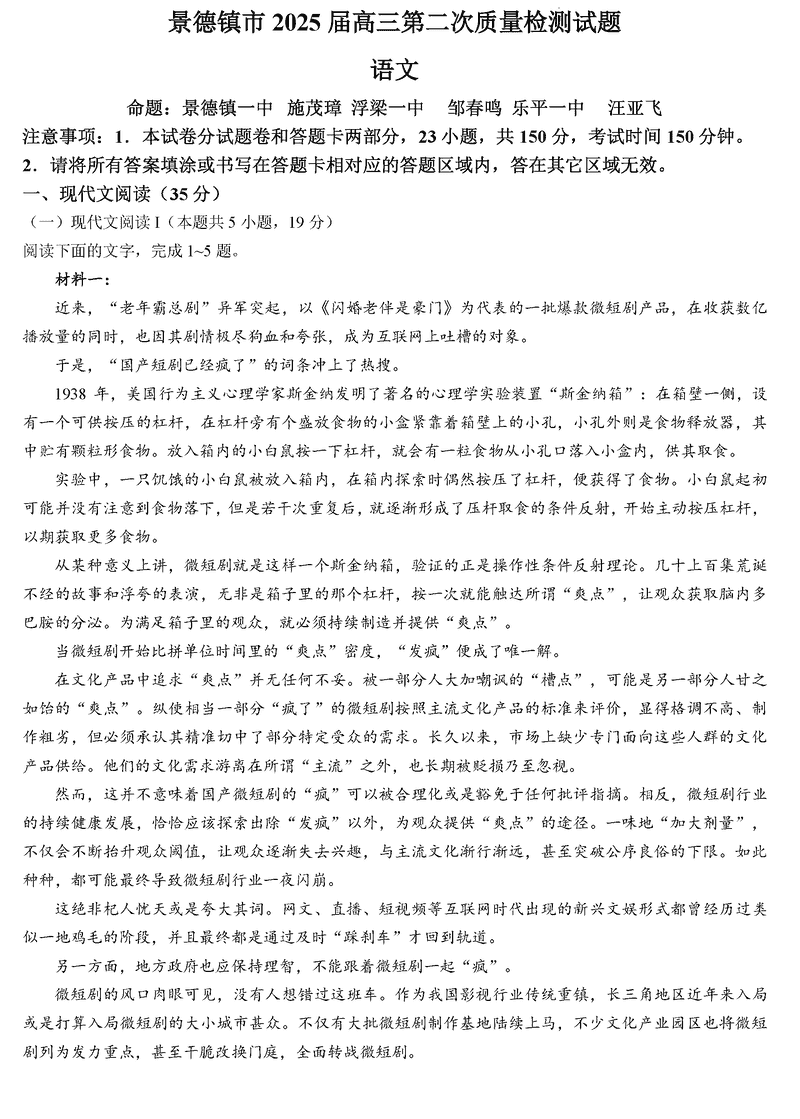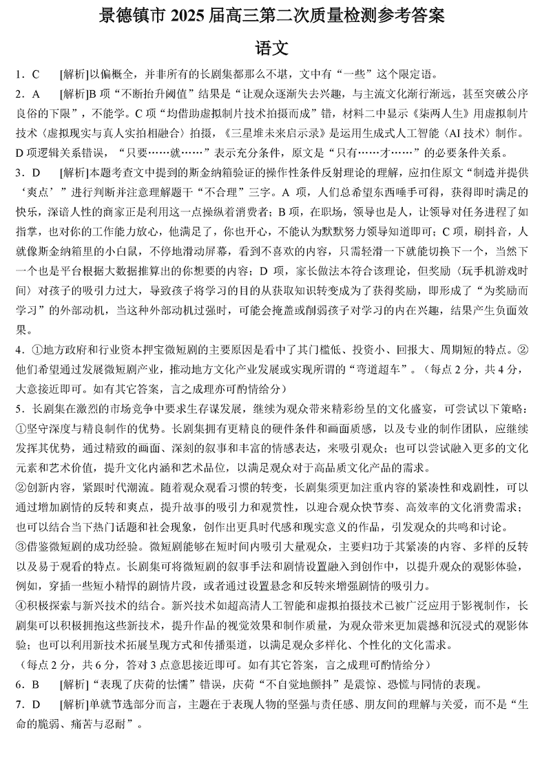江西景德镇2025届高三上学期第二次质检语文考试已于近日开考,为方便考生考后及时查看考试情况,查漏补缺、弥补不足,本文整理了试题答案解析相关信息!