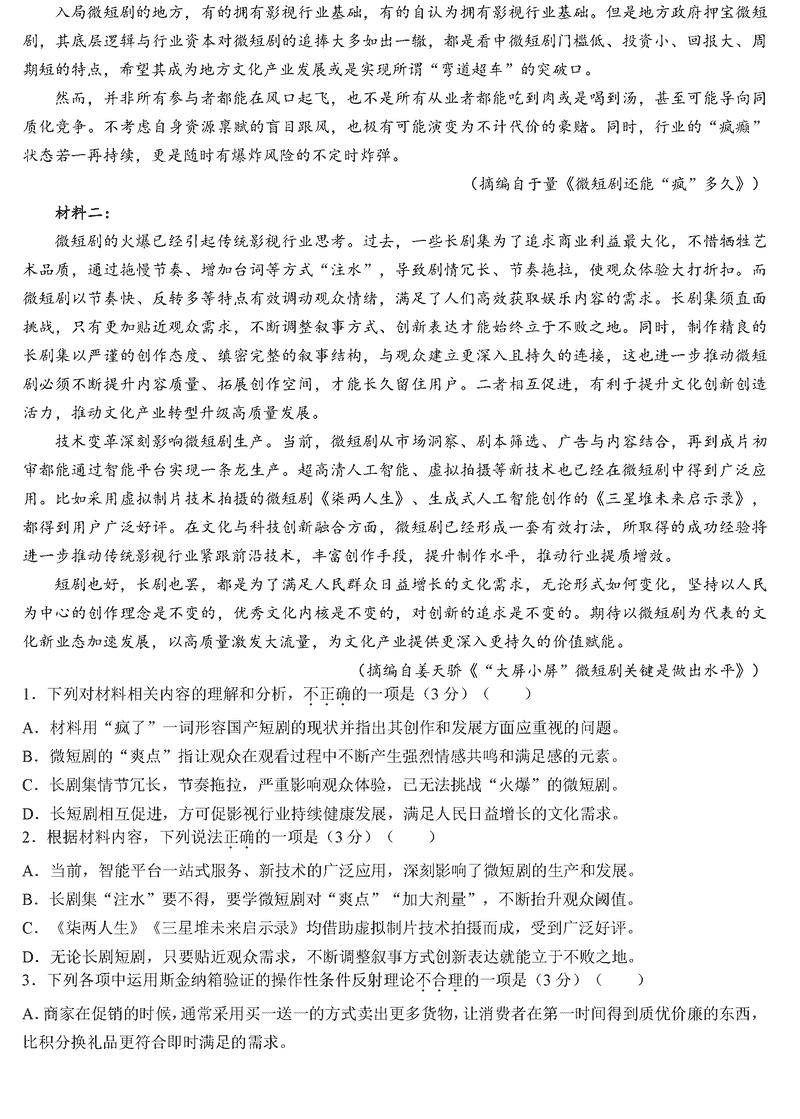 江西景德镇2025届高三上学期第二次质检语文试题及答案