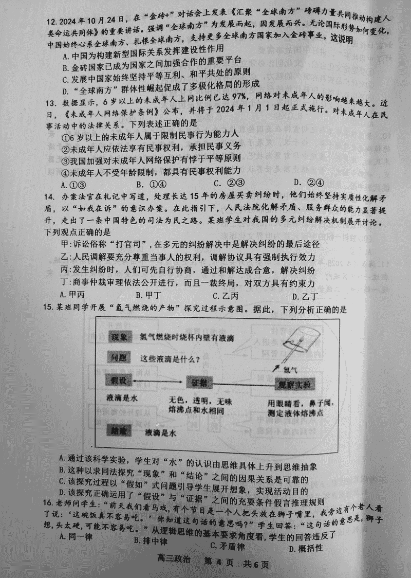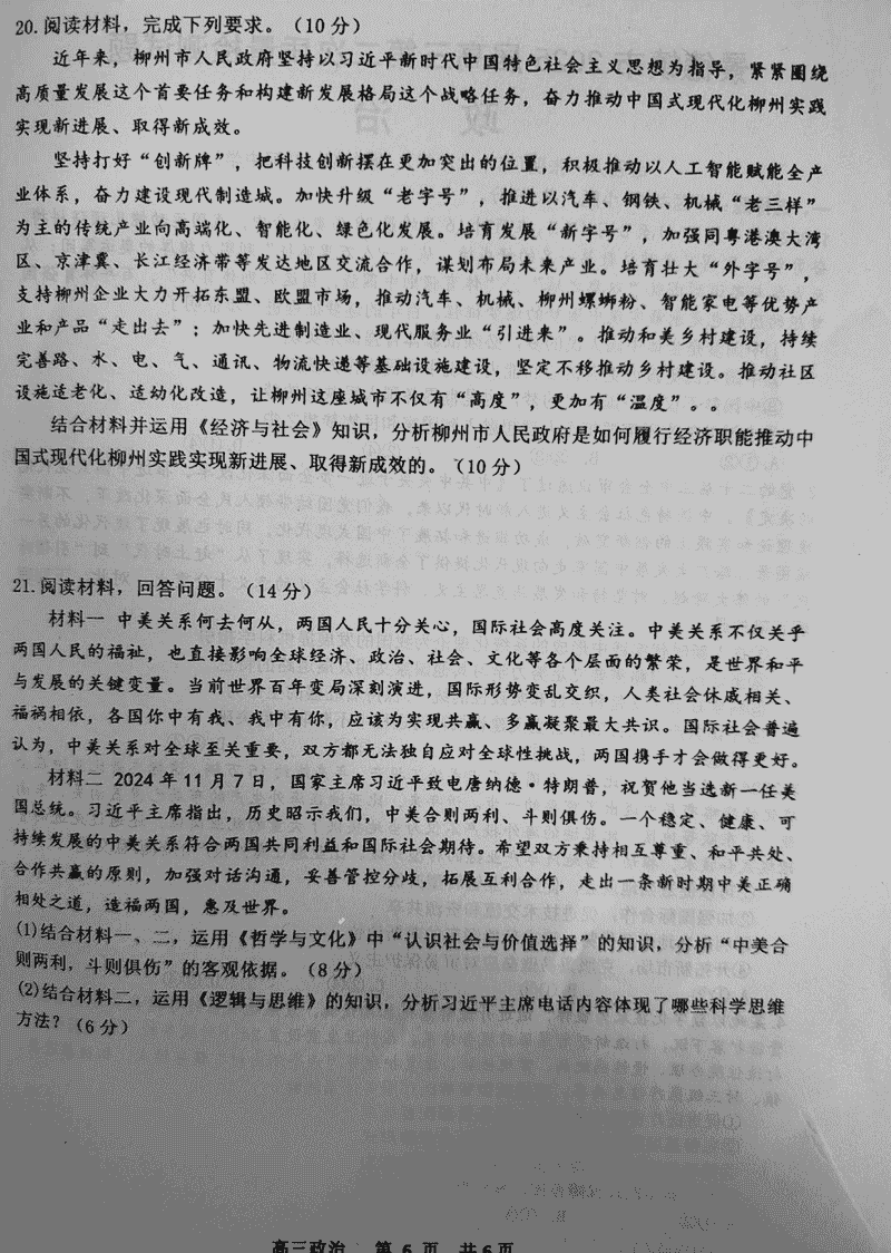 江西景德镇2025届高三上学期第二次质检政治试题及答案
