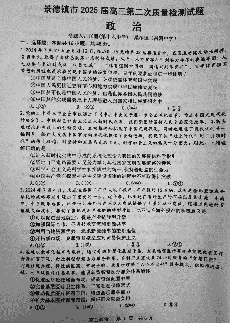江西景德镇2025届高三上学期第二次质检政治考试已于近日开考,为方便考生考后及时查看考试情况,查漏补缺、弥补不足,本文整理了试题答案解析相关信息!