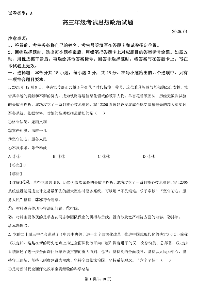 山东泰安2024-2025学年高三上学期1月期末政治考试已于近日开考,为方便考生考后及时查看考试情况,查漏补缺、弥补不足,本文整理了试题答案解析相关信息!