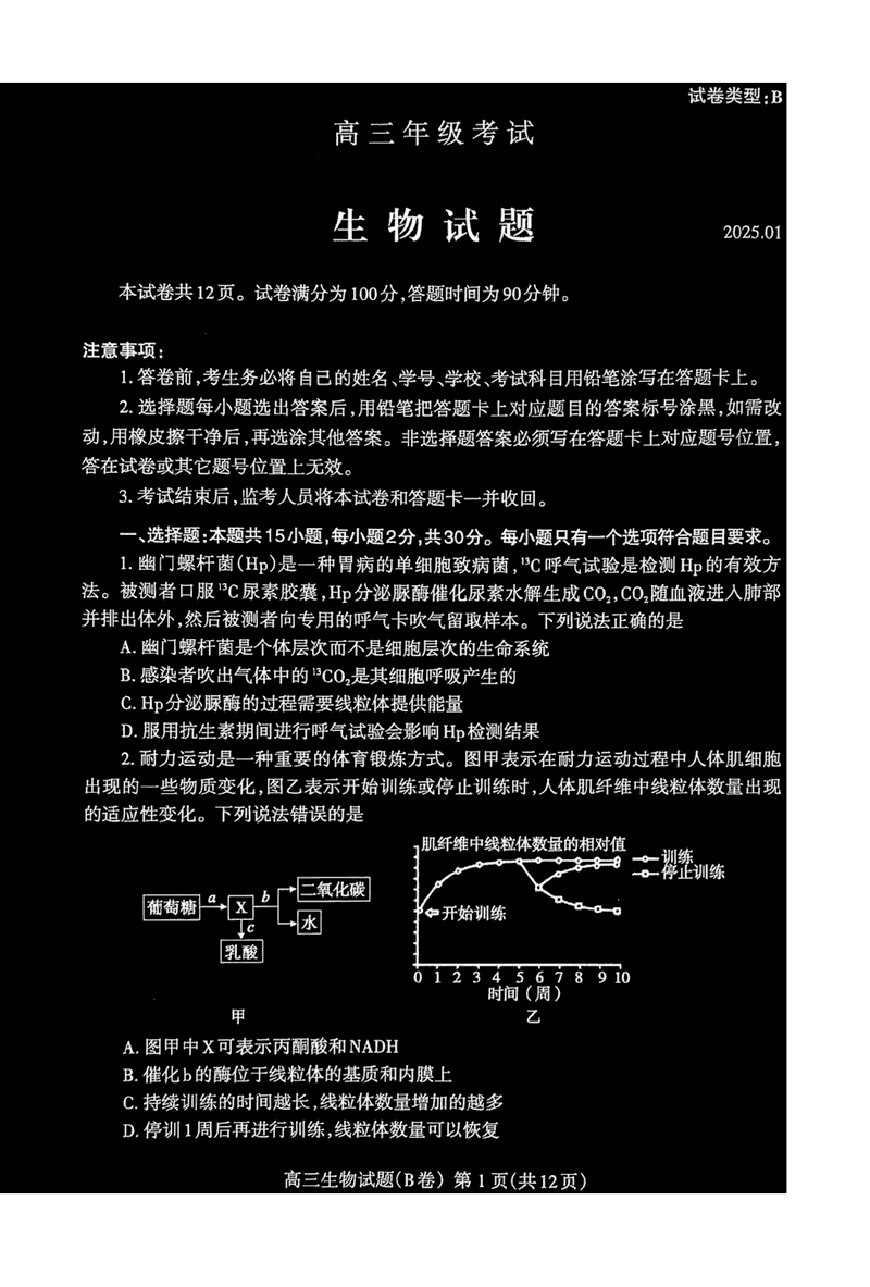 山东泰安2024-2025学年高三上学期1月期末生物试题及答案