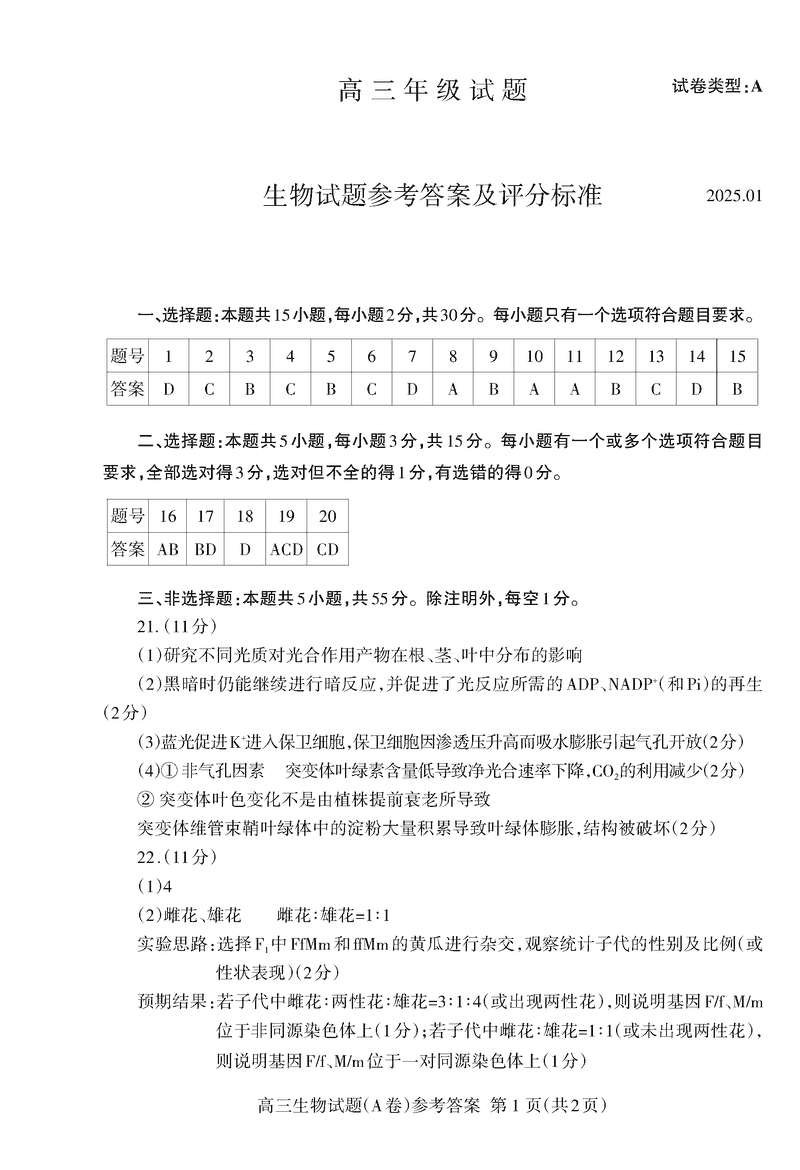 山东泰安2024-2025学年高三上学期1月期末生物考试已于近日开考,为方便考生考后及时查看考试情况,查漏补缺、弥补不足,本文整理了试题答案解析相关信息!