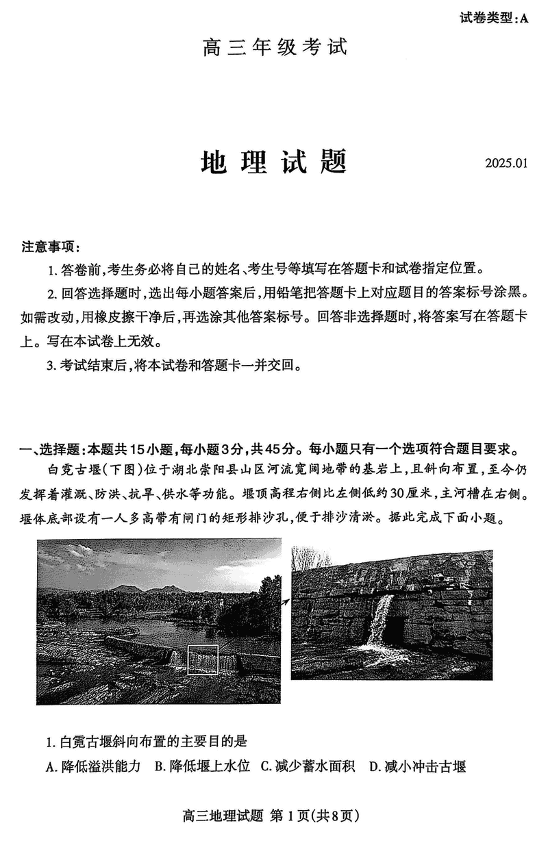 山东泰安2024-2025学年高三上学期1月期末地理考试已于近日开考,为方便考生考后及时查看考试情况,查漏补缺、弥补不足,本文整理了试题答案解析相关信息!