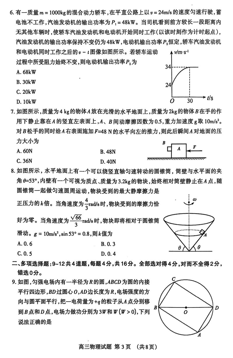 山东泰安2024-2025学年高三上学期1月期末物理试题及答案