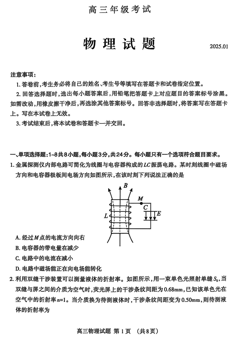 山东泰安2024-2025学年高三上学期1月期末物理考试已于近日开考,为方便考生考后及时查看考试情况,查漏补缺、弥补不足,本文整理了试题答案解析相关信息!