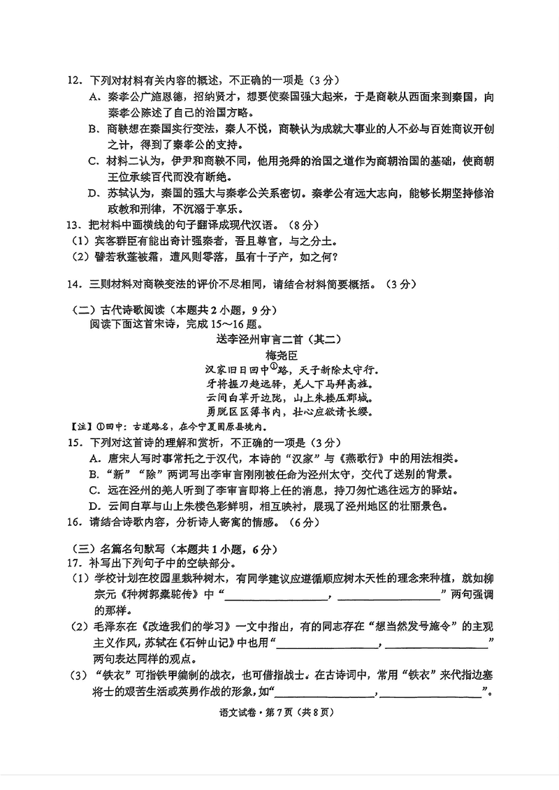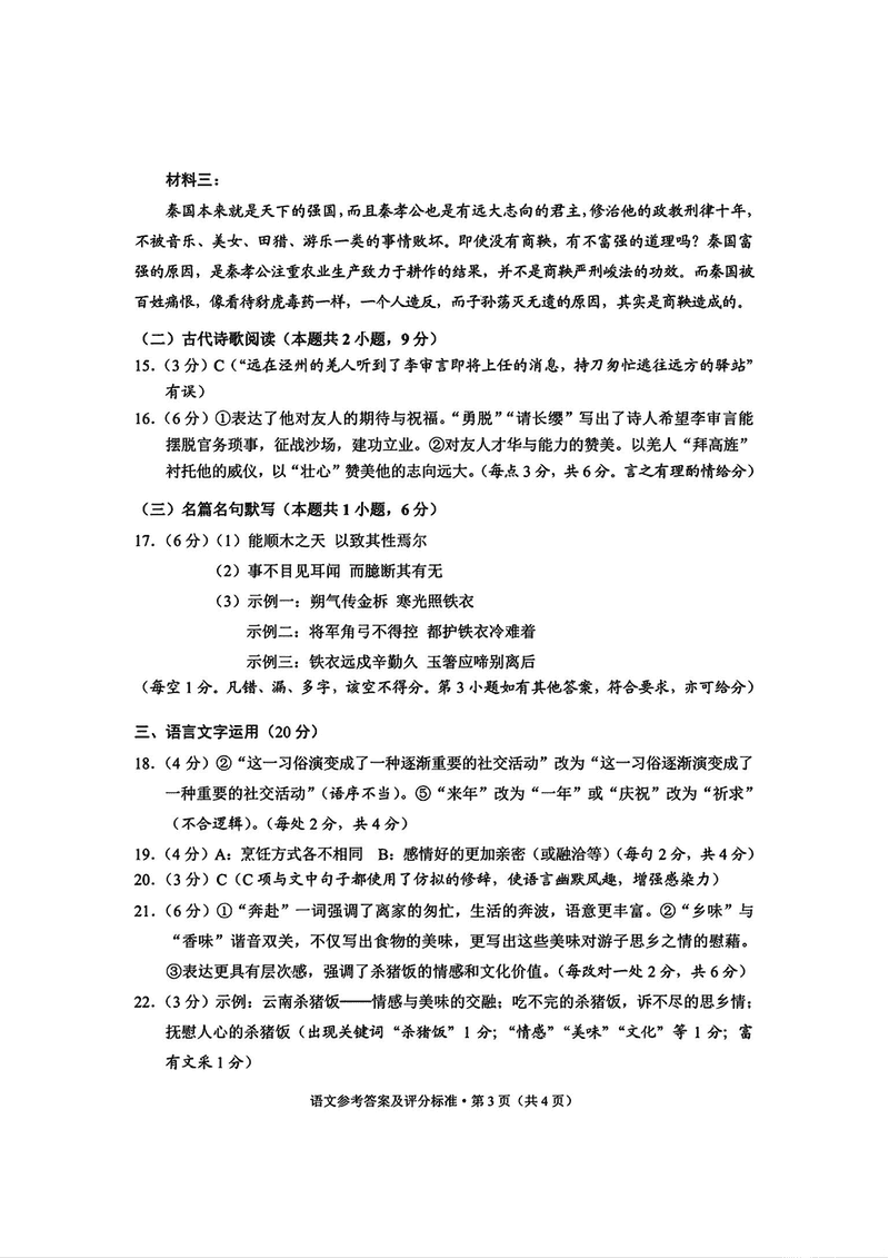 云南 语文试题