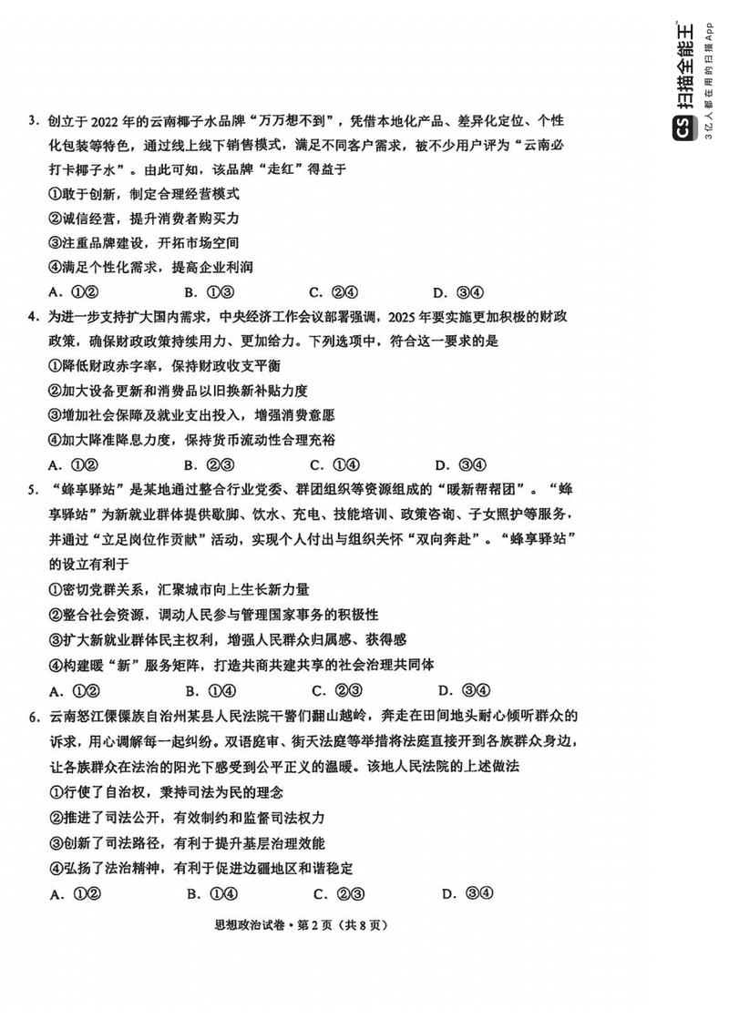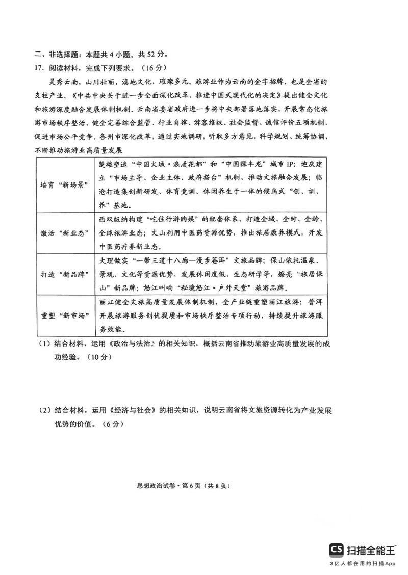 昆明三诊一模2025届高三摸底诊断政治考试已于近日开考,为方便考生考后及时查看考试情况,查漏补缺、弥补不足,本文整理了试题答案解析相关信息!