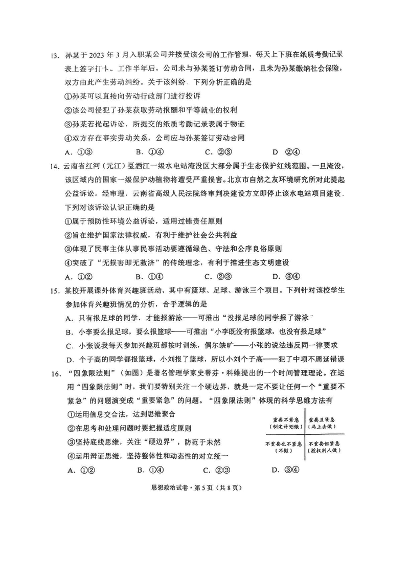 昆明三诊一模2025届高三摸底诊断政治试题及答案
