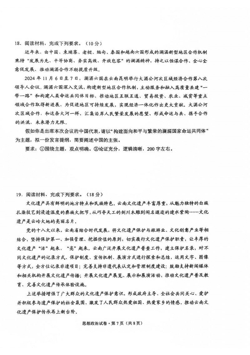 云南 文综试题