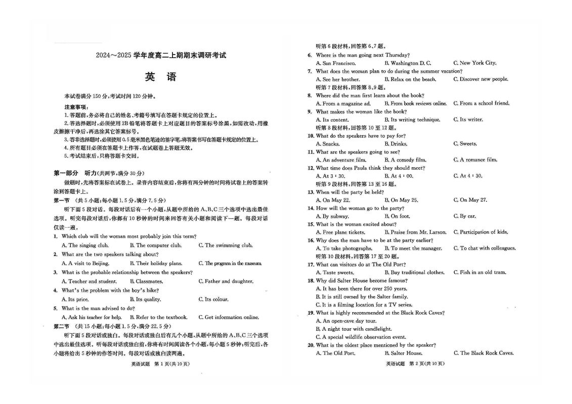 四川成都2025年高二上期期末统一调研英语试题及答案 时间:2025-01-27 四川 高中英语 四川省成都市2025年高二上期期末统一调研英语考试已于近日开考,为方便考生考后及时查看考试情况,查漏补缺、弥补不足,本文整理了试题答案解析相关信息! 英语试题及答案解析