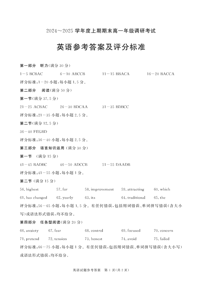 四川成都2025年高一上期期末统一调研英语试题及答案 时间:2025-01-27 四川 高中英语 四川省成都市2025年高一上期期末统一调研英语考试已于近日开考,为方便考生考后及时查看考试情况,查漏补缺、弥补不足,本文整理了试题答案解析相关信息! 英语试题及答案解析