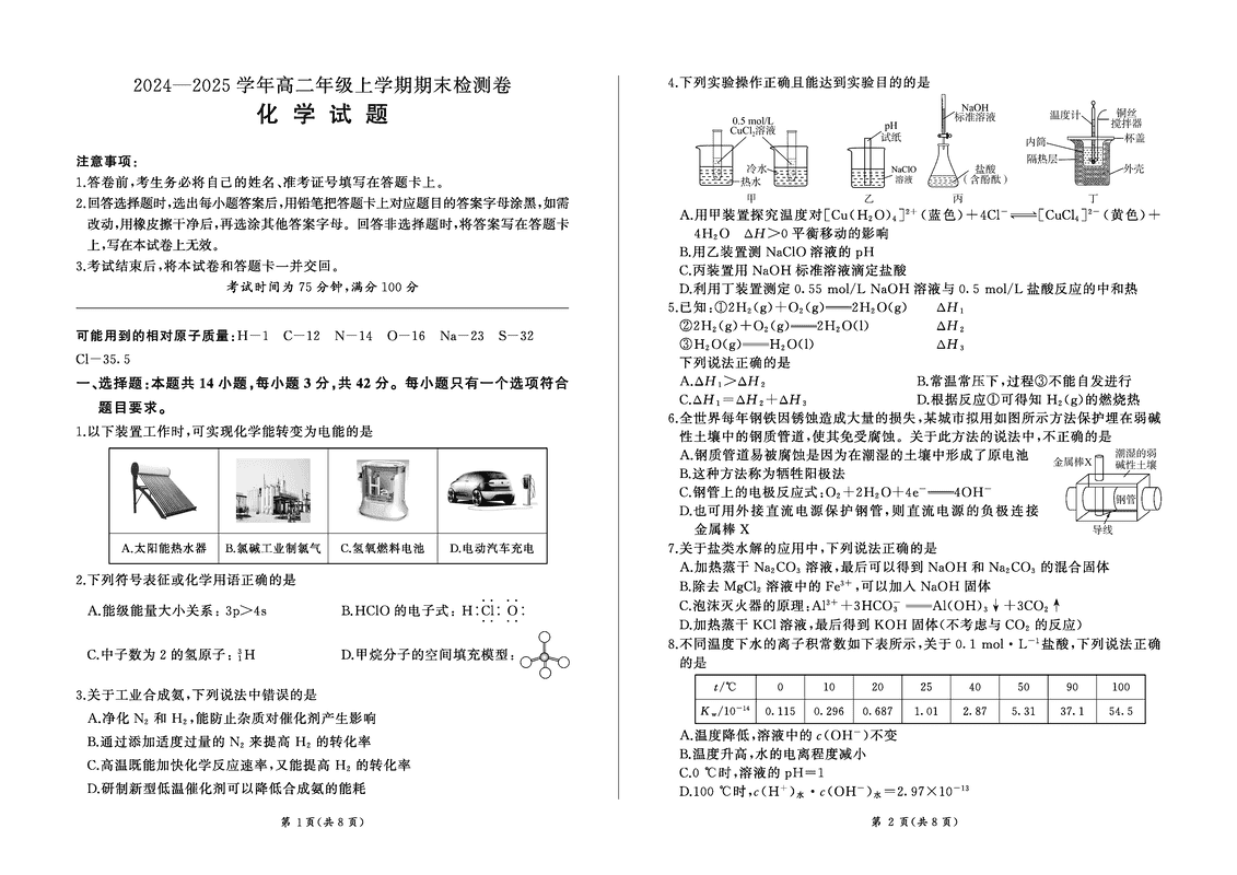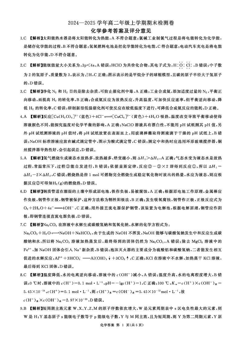 湖南百师联盟2024-2025学年高二上学期1月期末联考化学试题及答案 时间:2025-01-27 湖南 高中化学 湖南省百师联盟2024-2025学年高二上学期1月期末联考化学考试已于近日开考,为方便考生考后及时查看考试情况,查漏补缺、弥补不足,本文整理了试题答案解析相关信息! 化学试题及答案解析