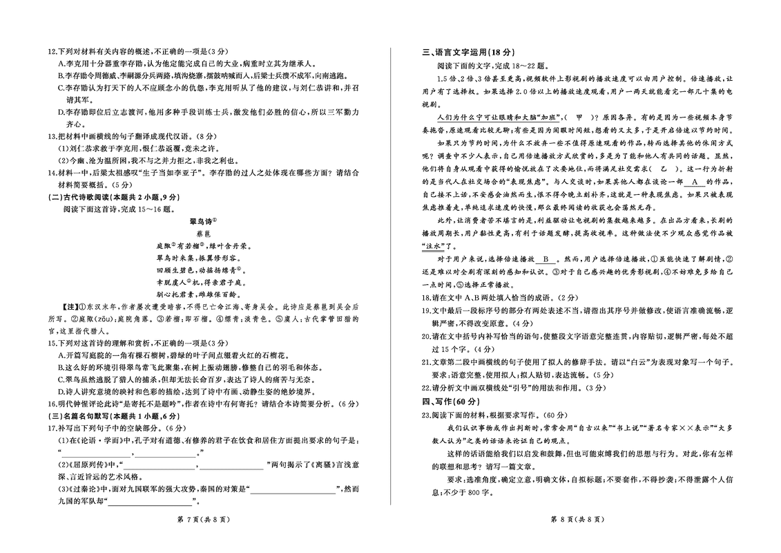 湖南百师联盟2024-2025学年高二上学期1月期末联考语文试题及答案 时间:2025-01-27 湖南 高中语文 湖南省百师联盟2024-2025学年高二上学期1月期末联考语文考试已于近日开考,为方便考生考后及时查看考试情况,查漏补缺、弥补不足,本文整理了试题答案解析相关信息! 语文试题及答案解析