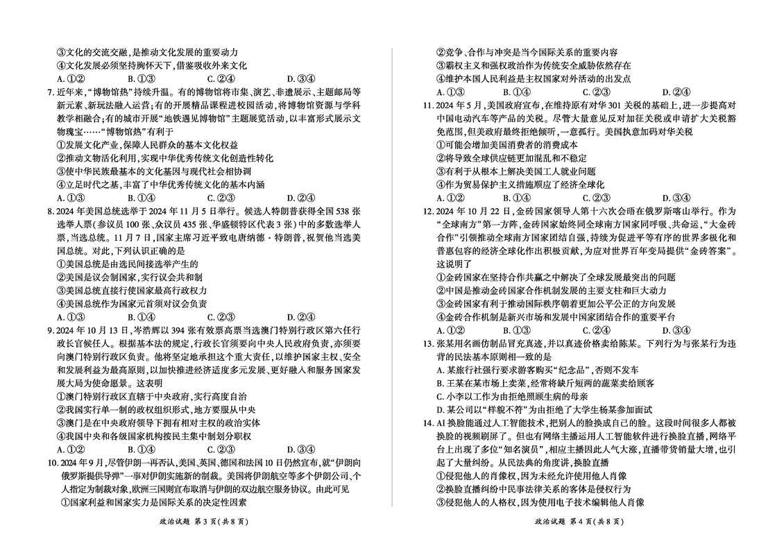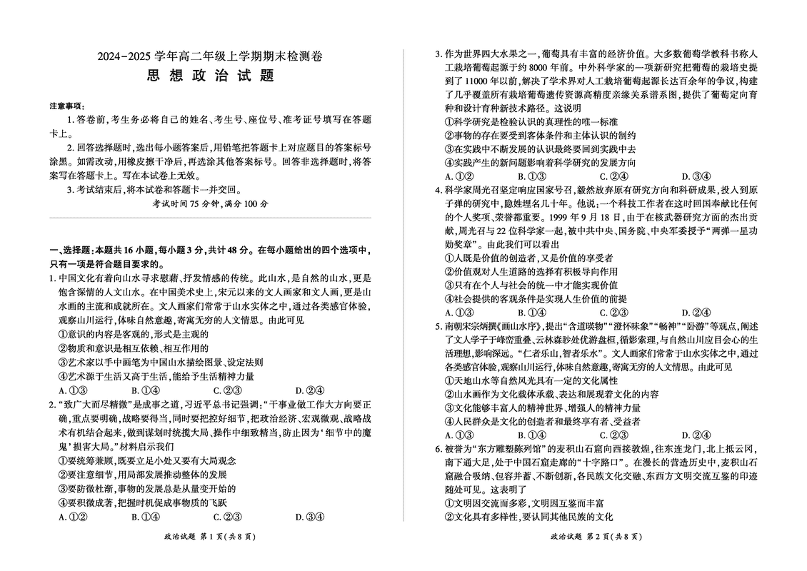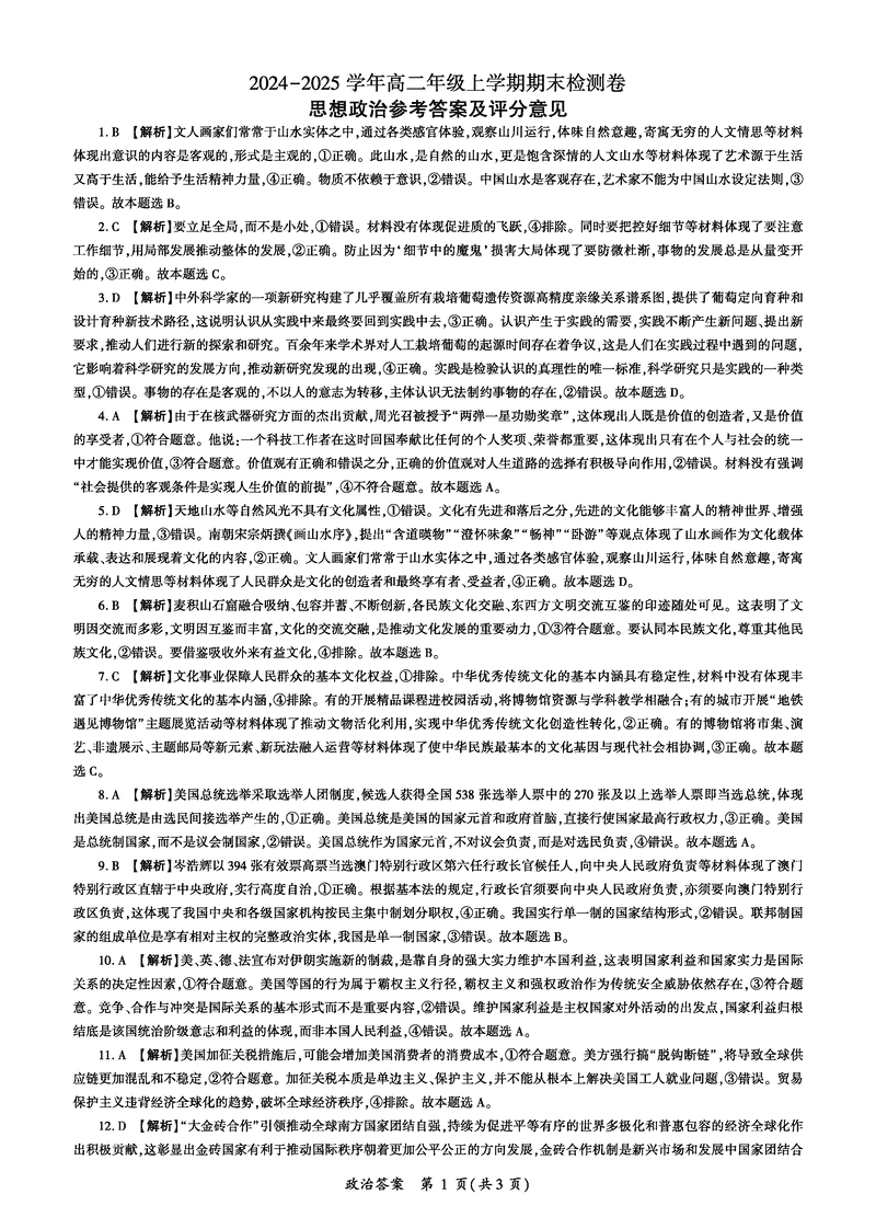湖南百师联盟2024-2025学年高二上学期1月期末联考政治试题及答案 时间:2025-01-27 湖南 高中政治 湖南省百师联盟2024-2025学年高二上学期1月期末联考政治考试已于近日开考,为方便考生考后及时查看考试情况,查漏补缺、弥补不足,本文整理了试题答案解析相关信息! 政治试题及答案解析