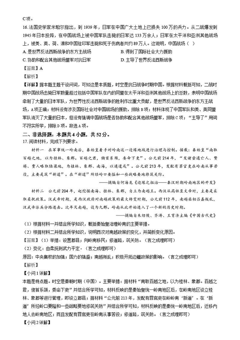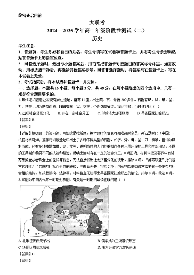 河南名校大联考2024-2025学年高一上学期12月月考历史试题及答案 时间:2025-01-27 河南 高中历史 河南名校大联考2024-2025学年高一上学期12月月考历史考试已于近日开考,为方便考生考后及时查看考试情况,查漏补缺、弥补不足,本文整理了试题答案解析相关信息! 历史试题及答案解析