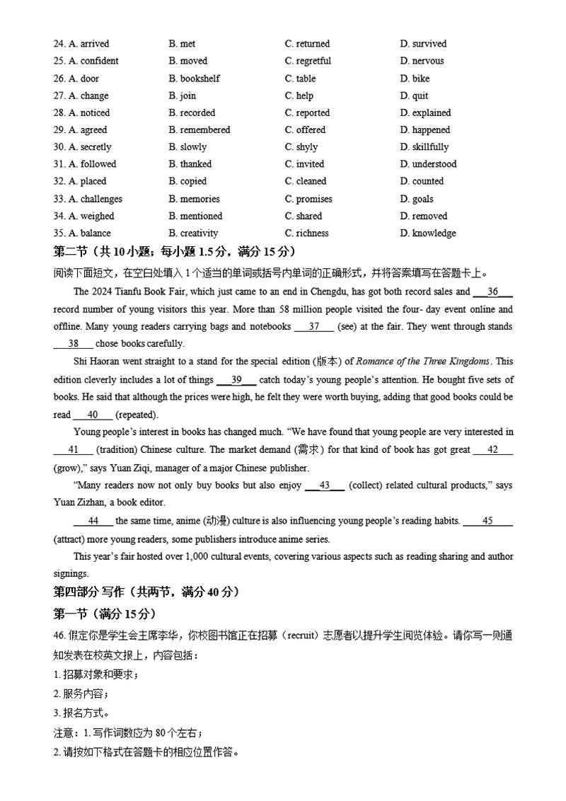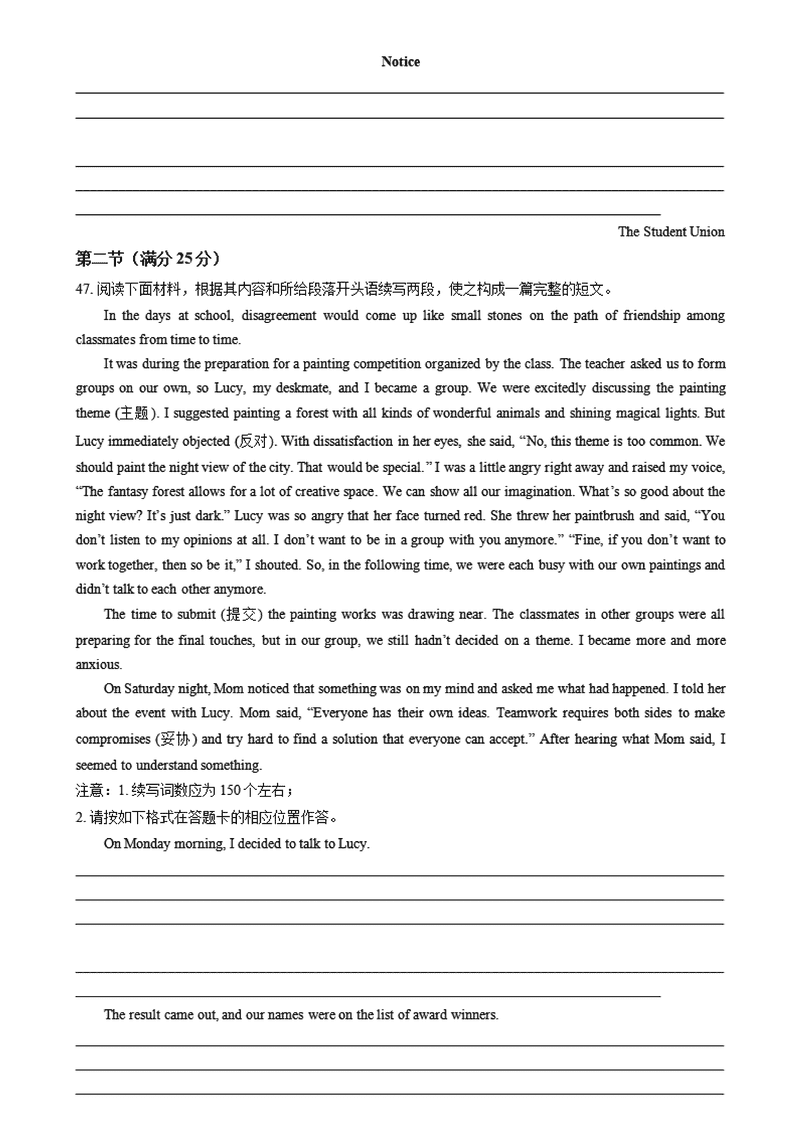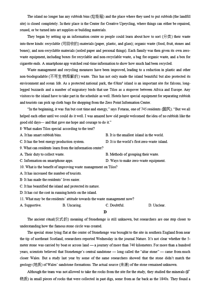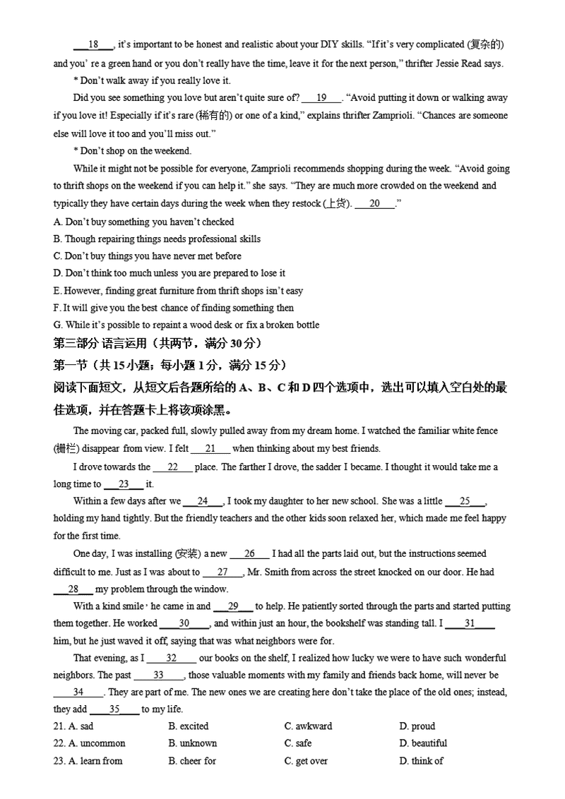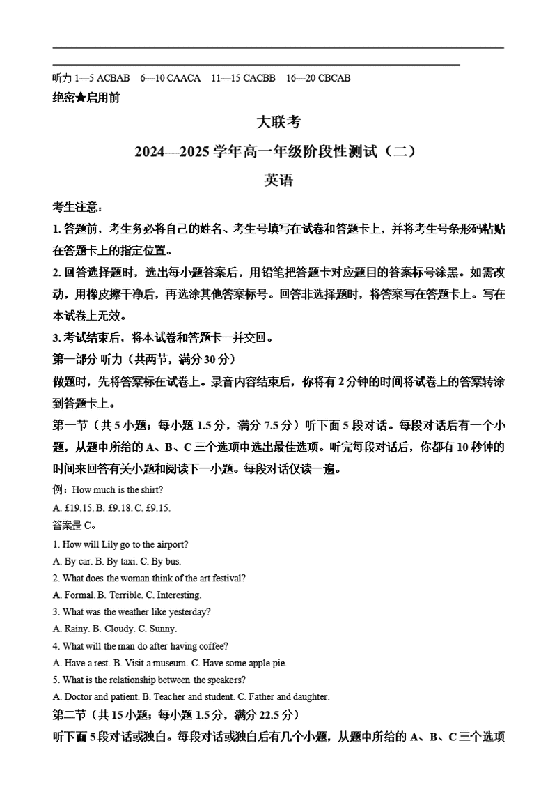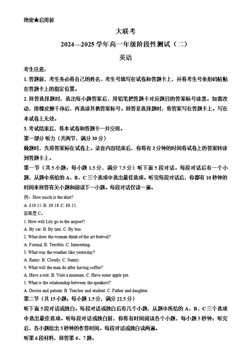 河南名校大联考2024-2025学年高一上学期12月月考英语试题及答案 时间:2025-01-27 河南 高中英语 河南名校大联考2024-2025学年高一上学期12月月考英语考试已于近日开考,为方便考生考后及时查看考试情况,查漏补缺、弥补不足,本文整理了试题答案解析相关信息! 英语试题及答案解析