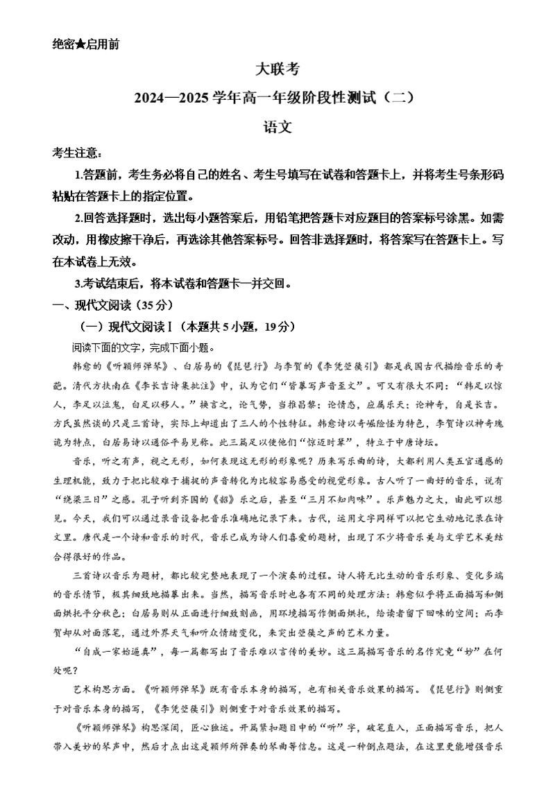 河南名校大联考2024-2025学年高一上学期12月月考语文试题及答案 时间:2025-01-27 河南 高中语文 河南名校大联考2024-2025学年高一上学期12月月考语文考试已于近日开考,为方便考生考后及时查看考试情况,查漏补缺、弥补不足,本文整理了试题答案解析相关信息! 语文试题及答案解析