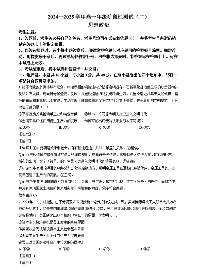 河南名校大联考2024-2025学年高一上学期12月月考政治试题及答案 时间:2025-01-27 河南 高中政治 河南名校大联考2024-2025学年高一上学期12月月考政治考试已于近日开考,为方便考生考后及时查看考试情况,查漏补缺、弥补不足,本文整理了试题答案解析相关信息! 政治试题及答案解析